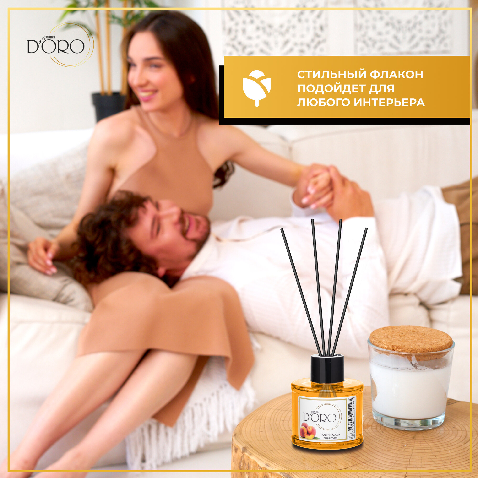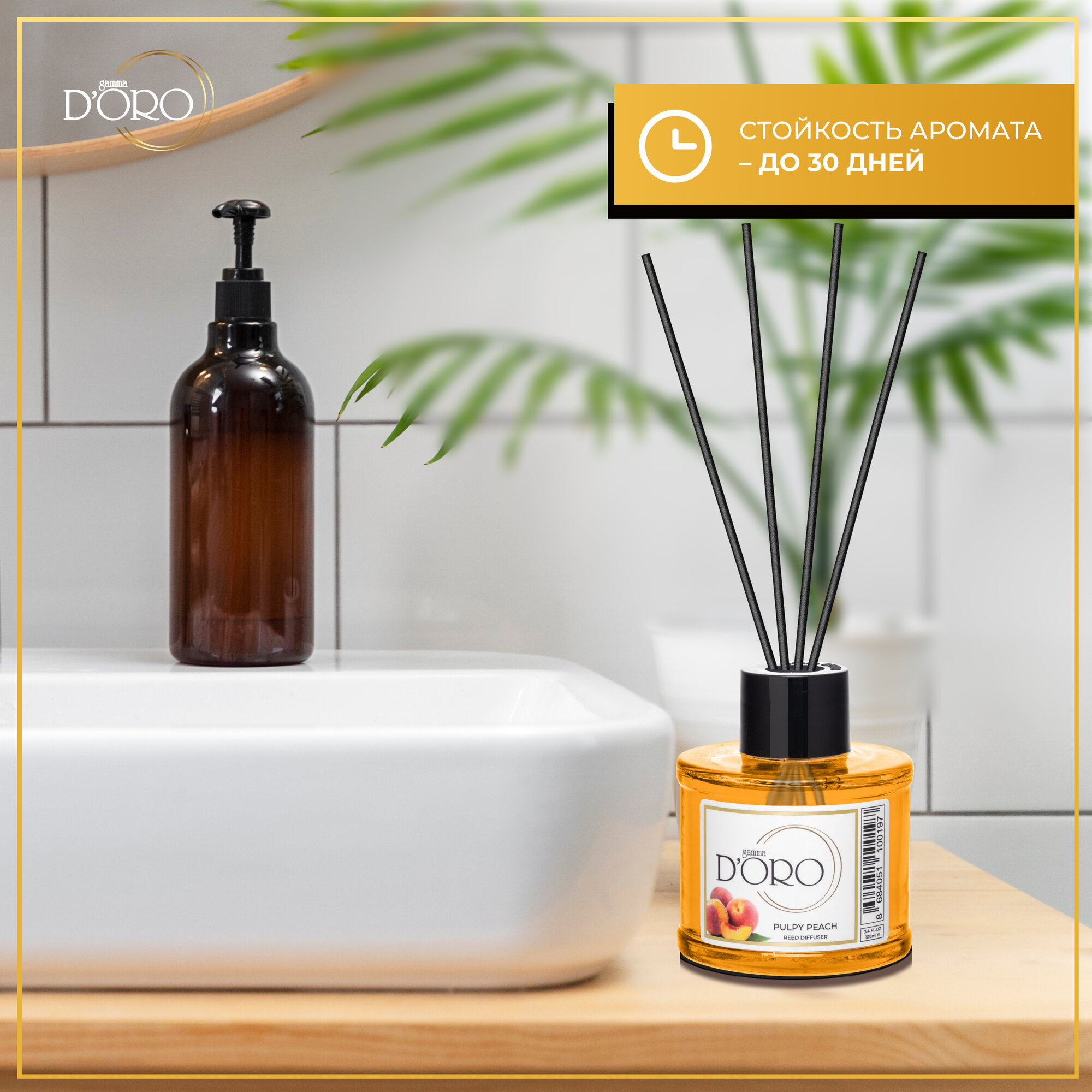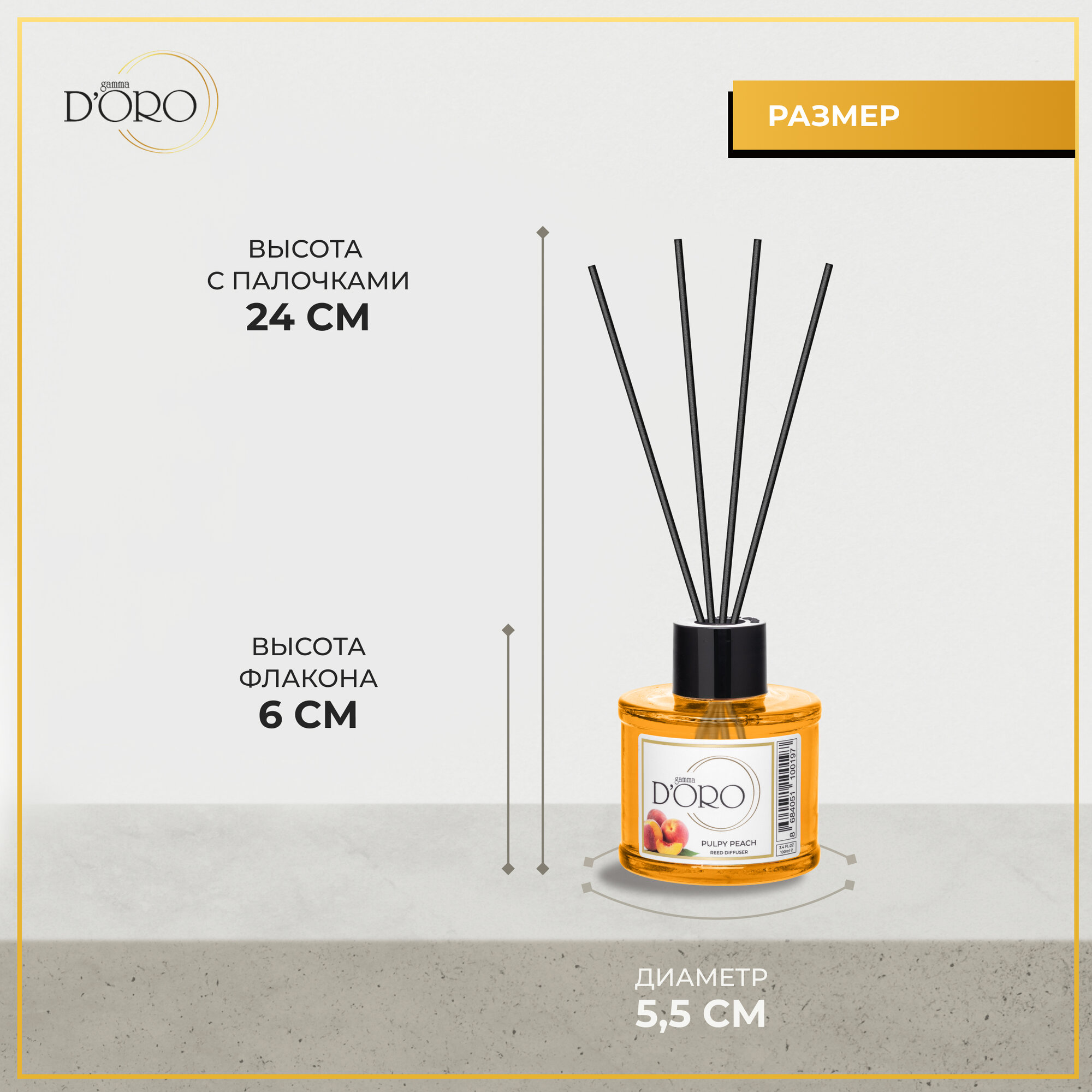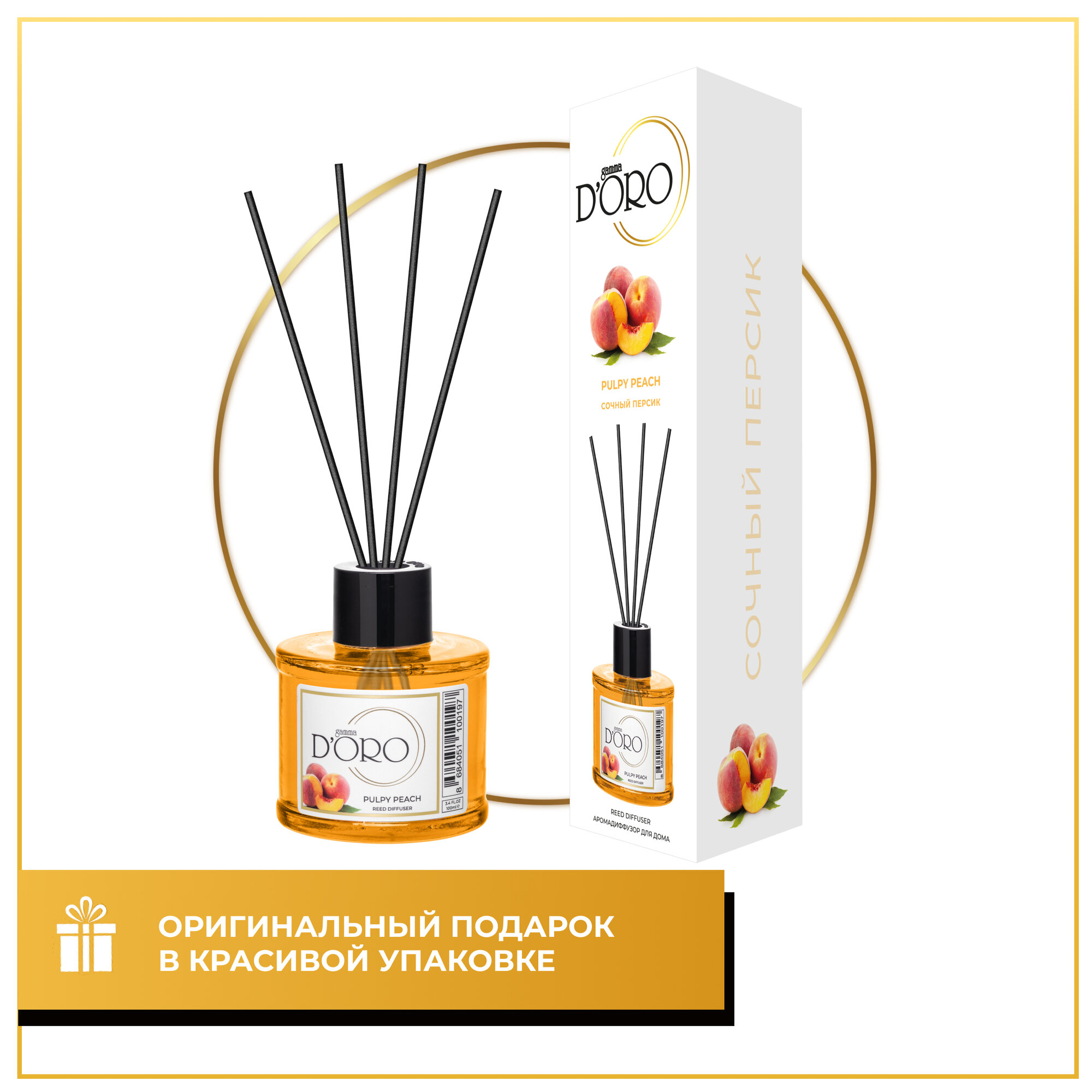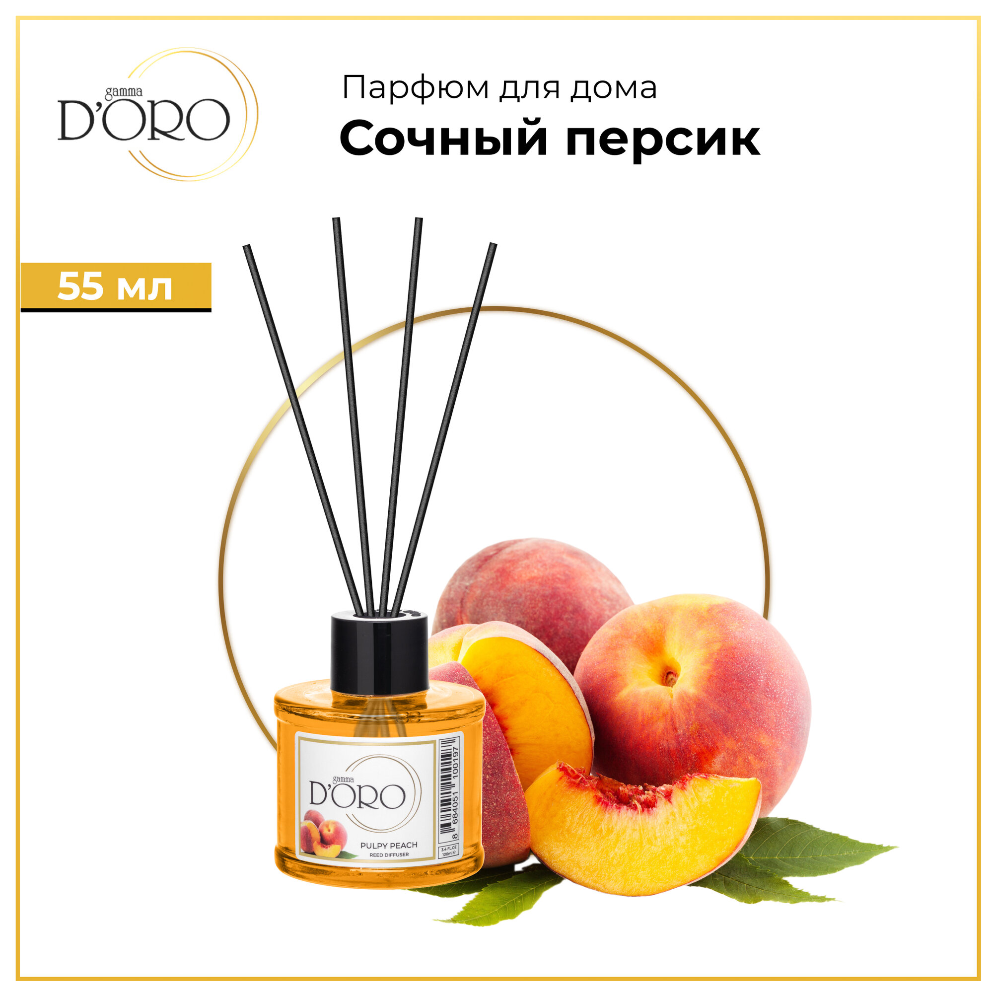 Купить Диффузор для дома Gamma D'Oro Сочный персик 55 мл, аромадиффузор с палочками, ароматизатор освежитель воздуха