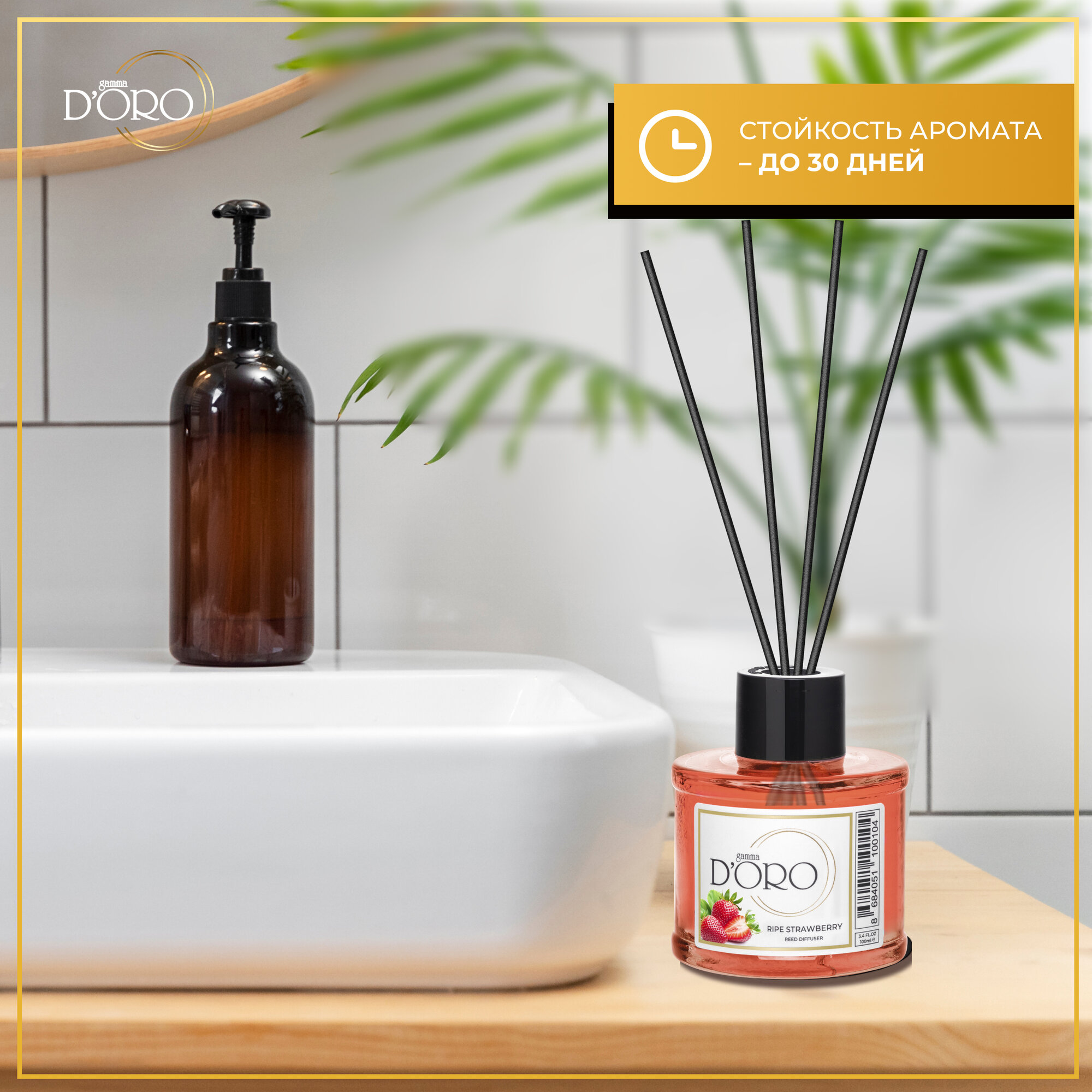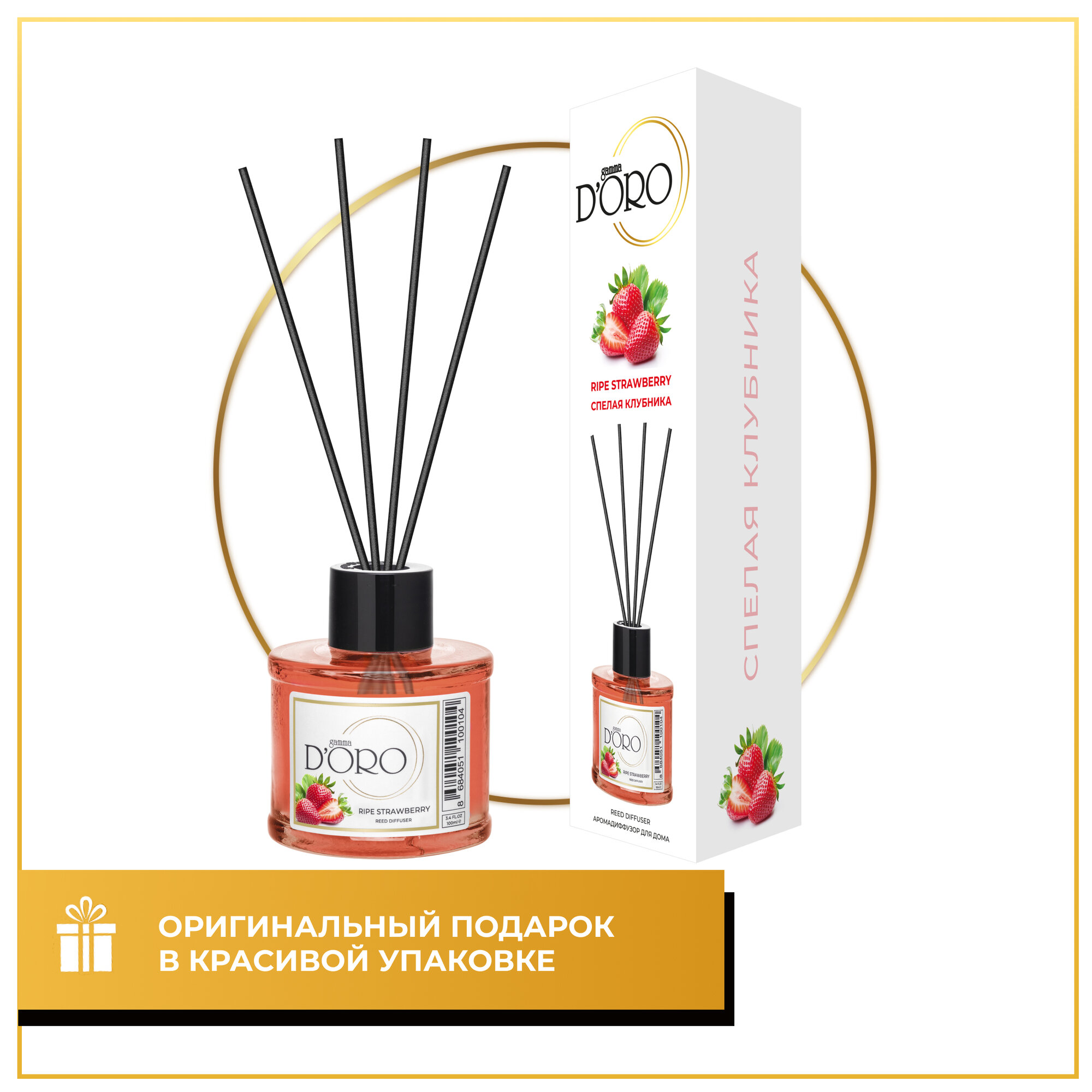 Ароматический диффузор для дома с палочками GAMMA D’ORO Спелая клубника 100 мл