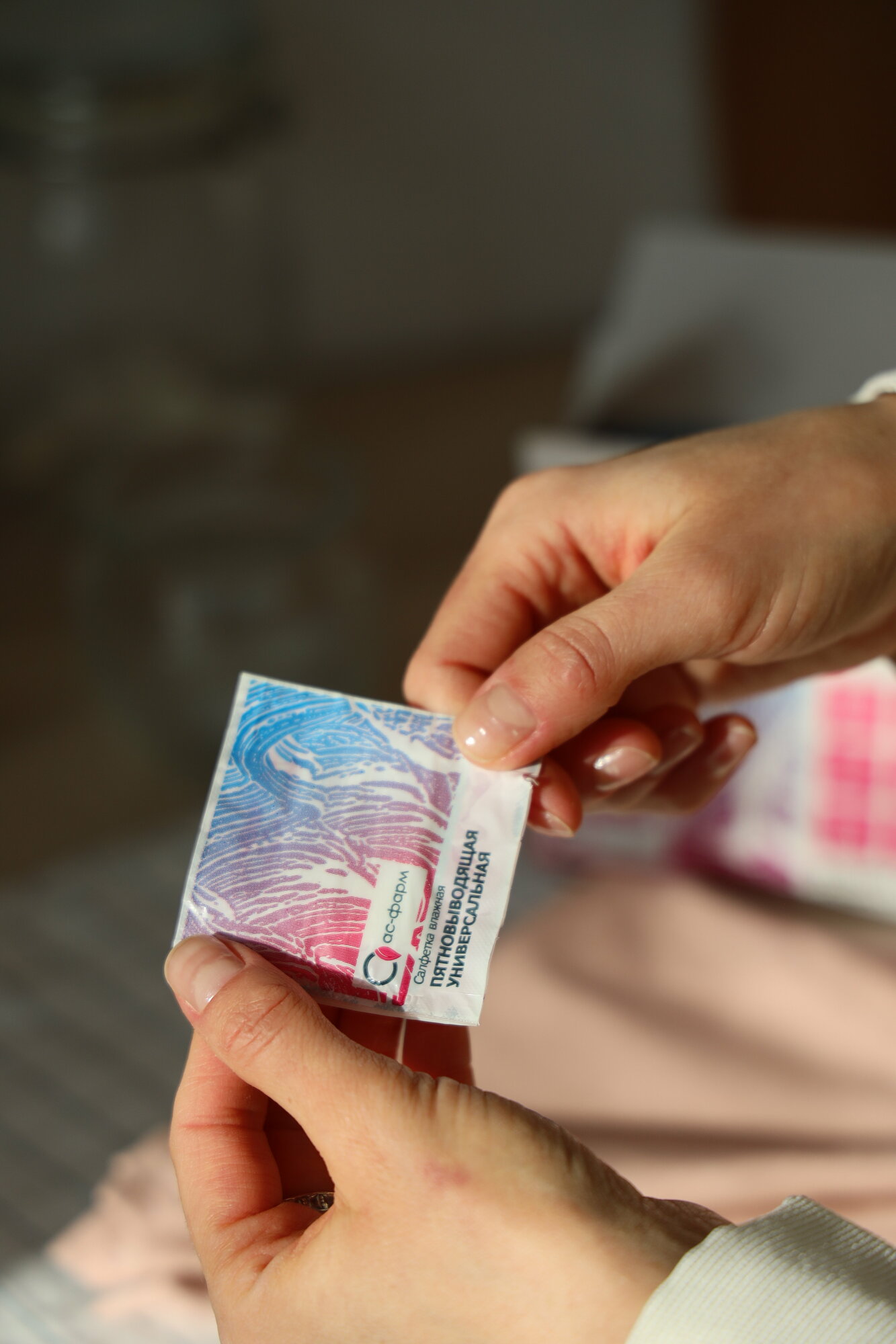 | Способ применения | Рекомендуется предварительно промокнуть салфеткой незаметный участок ткани на неиспачканной одежде, чтобы проверить как салфетка взаимодействует с вашим изделием. Протрите место загрязнения от краев к центру, удалите лишнюю влагу сухой салфеткой или тканью. Наилучший эффект будет достигнут на свежем пятне. |