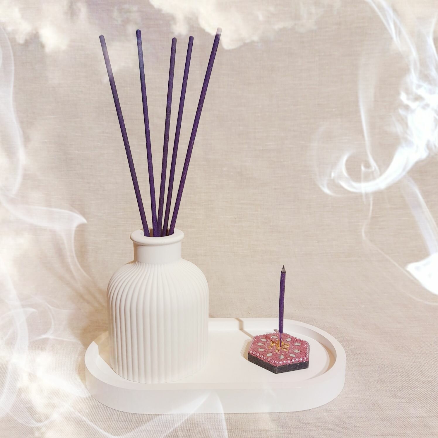 Ваза "Scandi" на подносе с подсвечником (набор 3 предмета) гипс. Подарок на любой праздник. Oshfar Decor