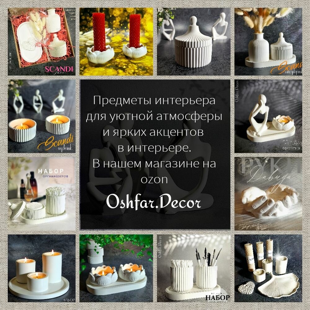 Ваза "Scandi" на подносе с подсвечником (набор 3 предмета) гипс. Подарок на любой праздник. Oshfar Decor