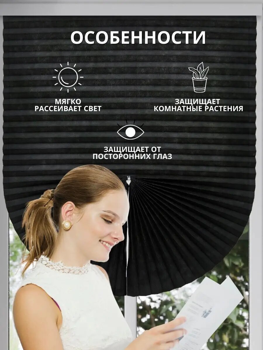Жалюзи плиссе, чёрный блэкаут, 90х180см, самоклеящиеся, без сверления