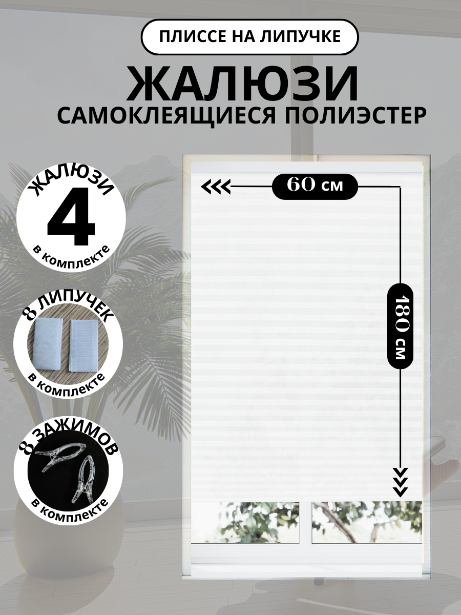 Купить Самоклеящиеся белые жалюзи плиссе DecorLX, без сверления, 4 штуки, 60х180