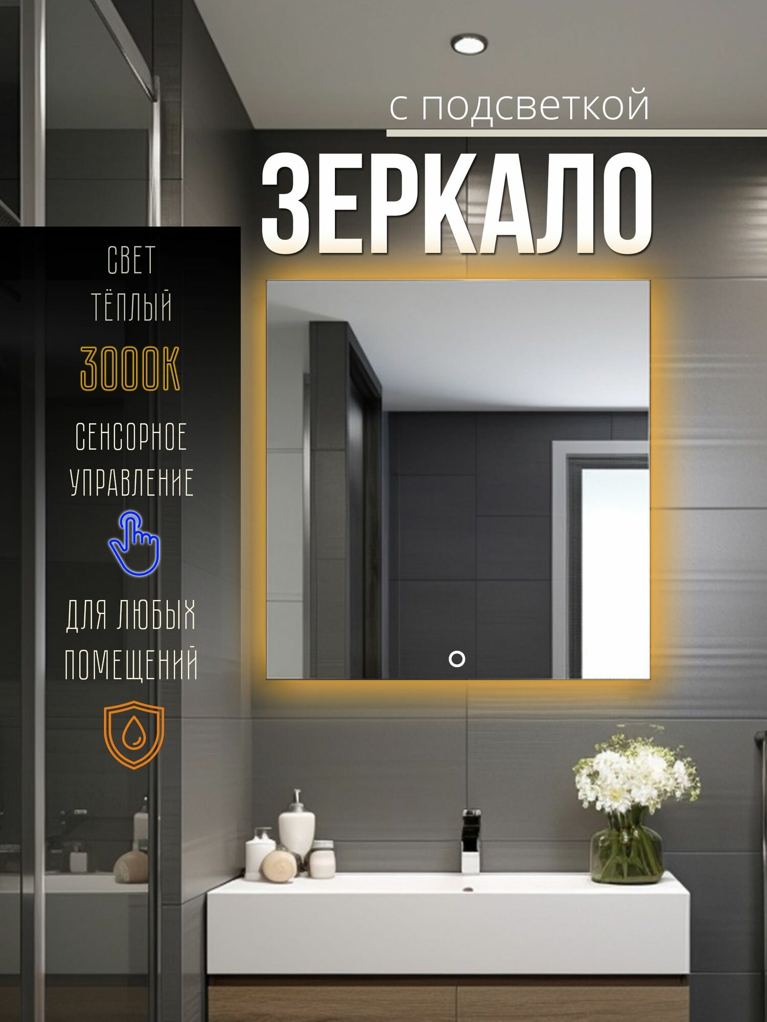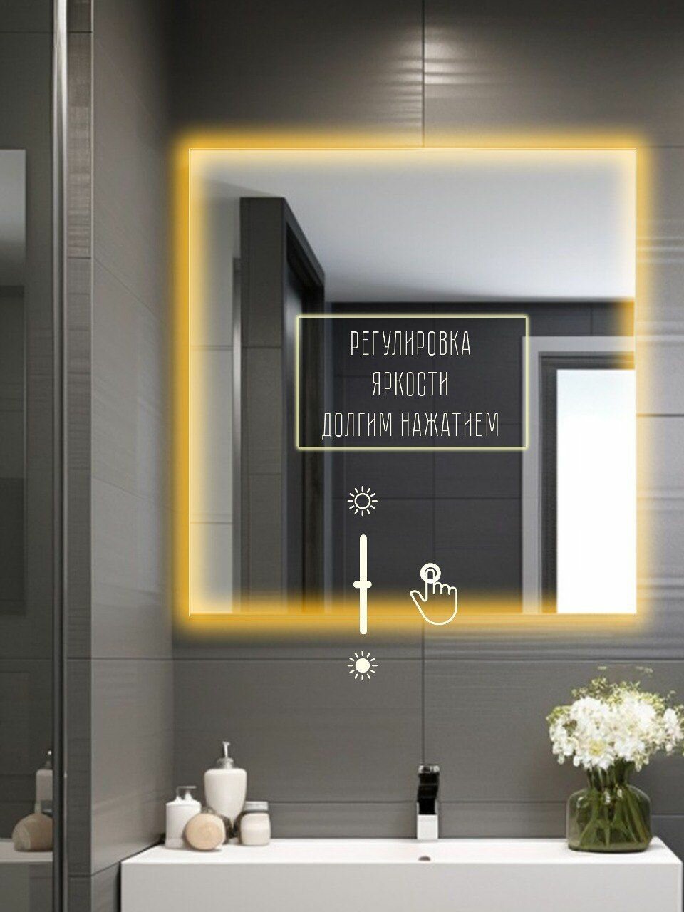 Зеркало настенное квадратное с подсветкой 50х50см теплый свет интересное: