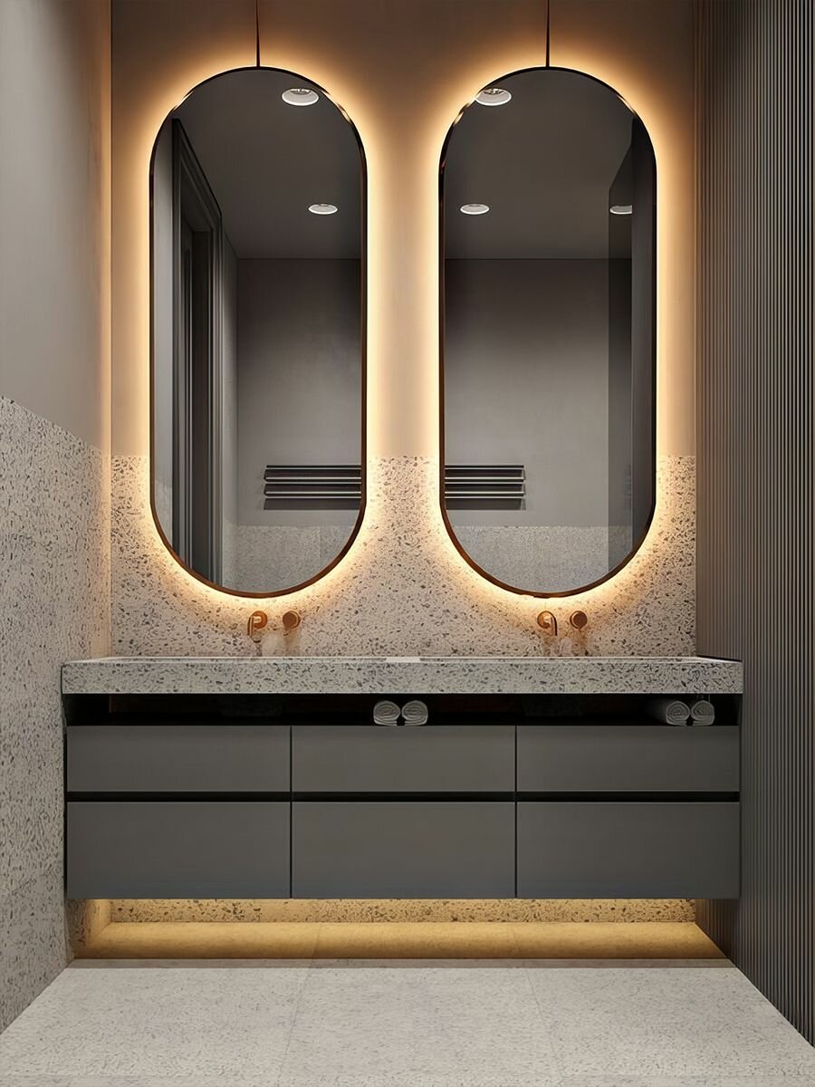 Зеркало настенное капсула в окантовке с подсветкой 45х77 см теплый свет интересное: