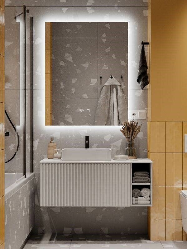 Зеркало Квартал 100*80 с нейтральной LED-подсветкой и часами вертикальное