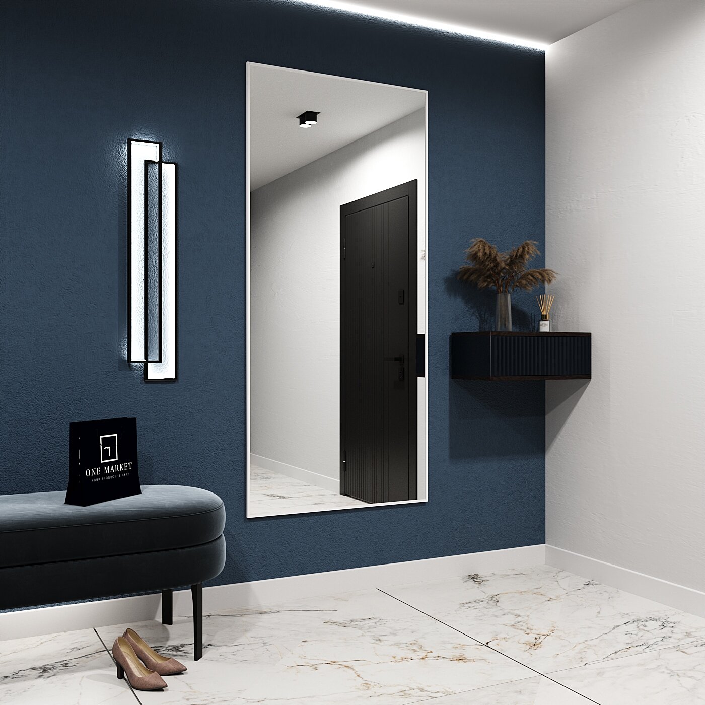 Зеркало настенное в алюминиевой раме ONE MARKET , 190х60 см. Белое
