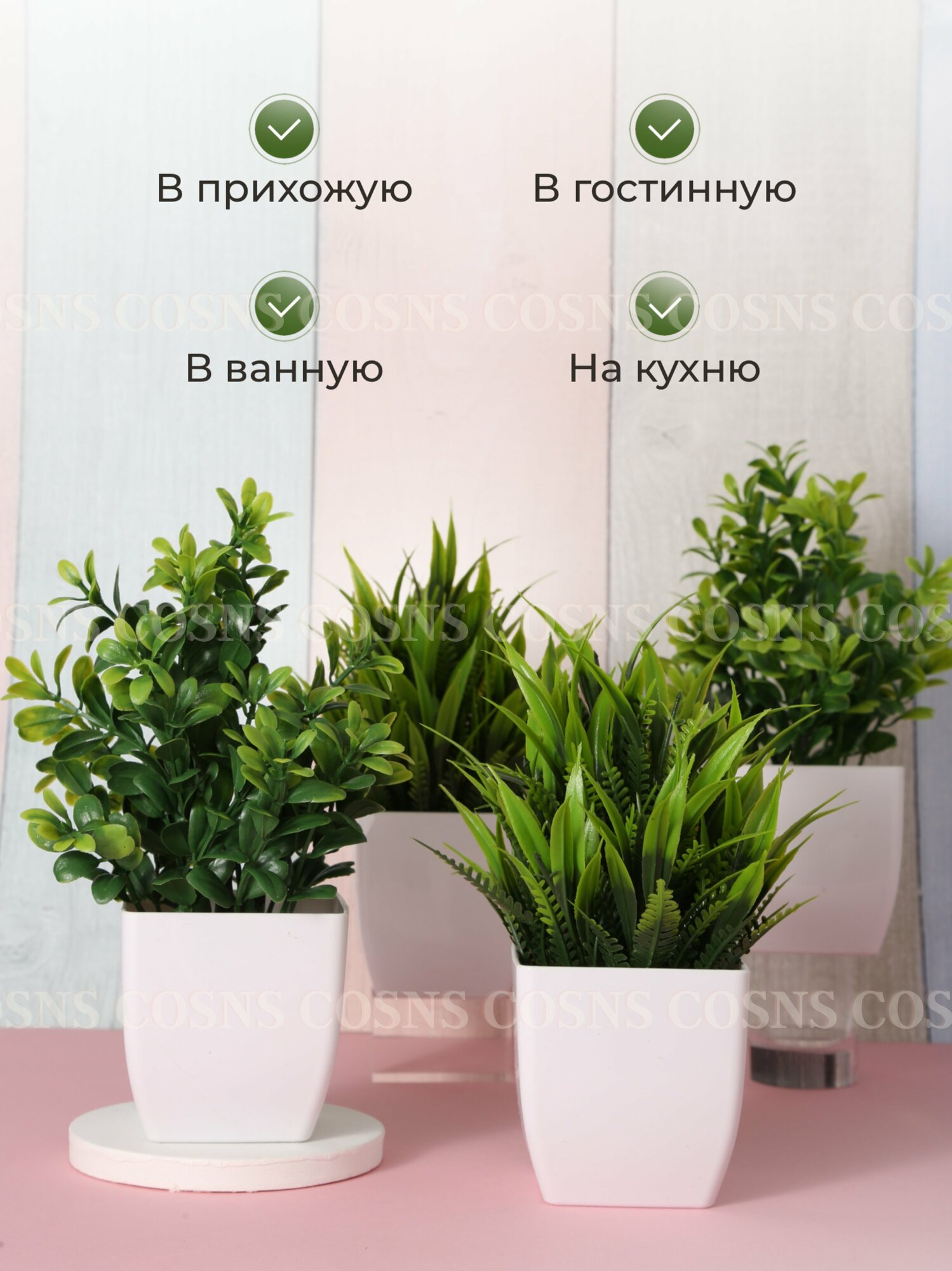 Искусственные цветы в горшке растения декор в кашпо 3 шт