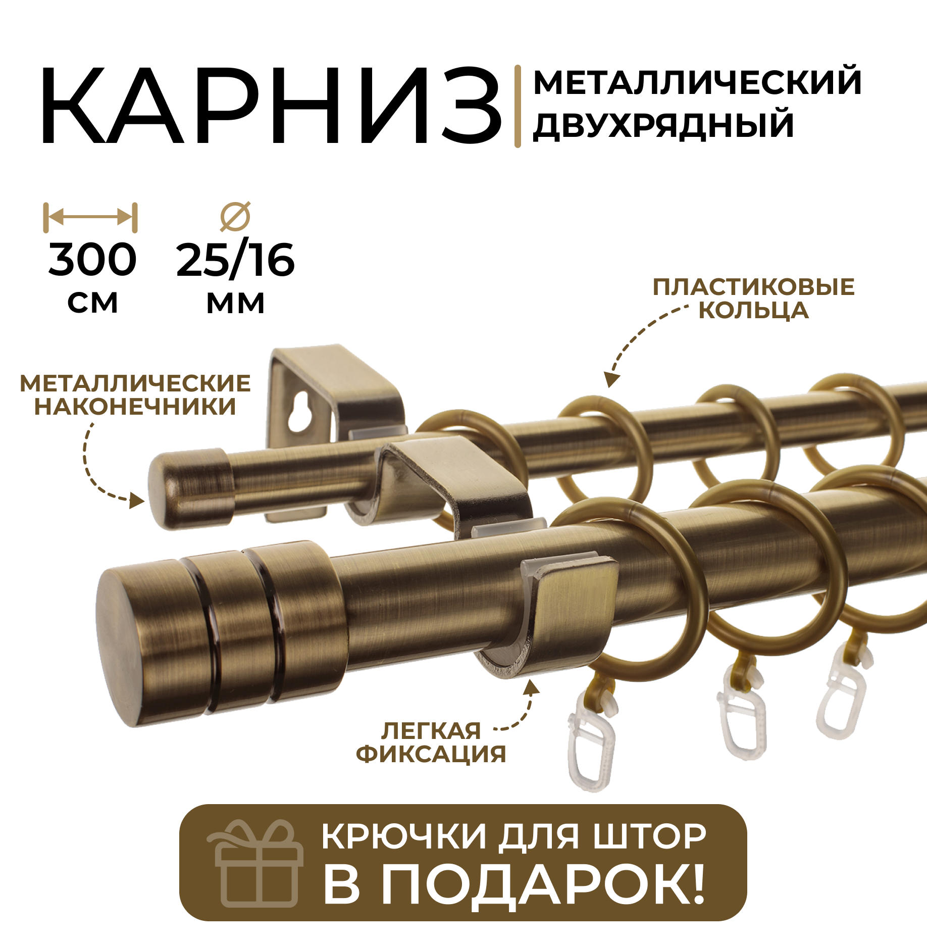 Карниз двухрядный металлический LM DECOR Лайт Цилиндр Ø25/16мм Антик 3,0м интересное: