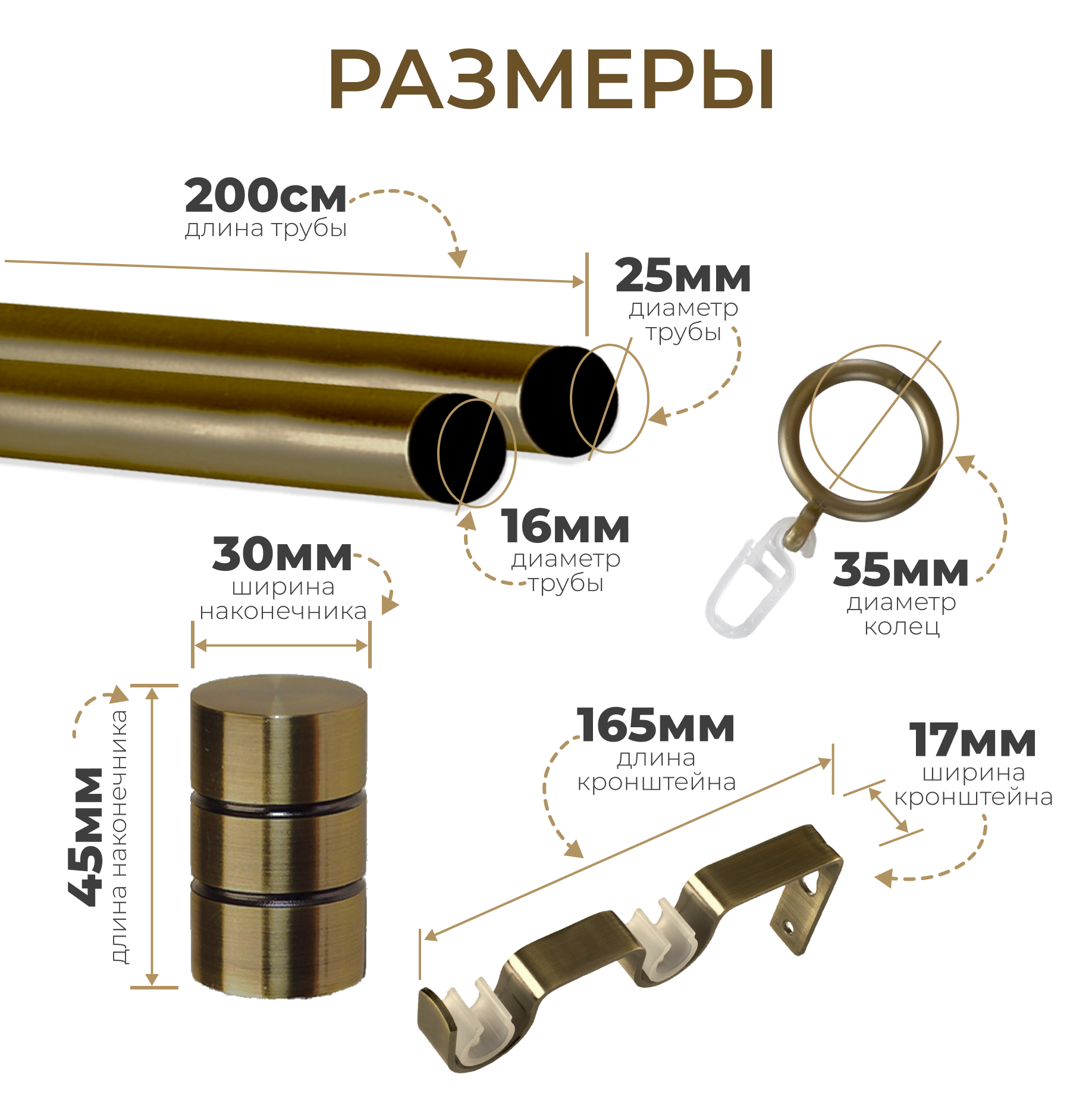 Карниз двухрядный металлический LM DECOR Лайт Цилиндр Ø25/16мм Антик 2,0м интересное: