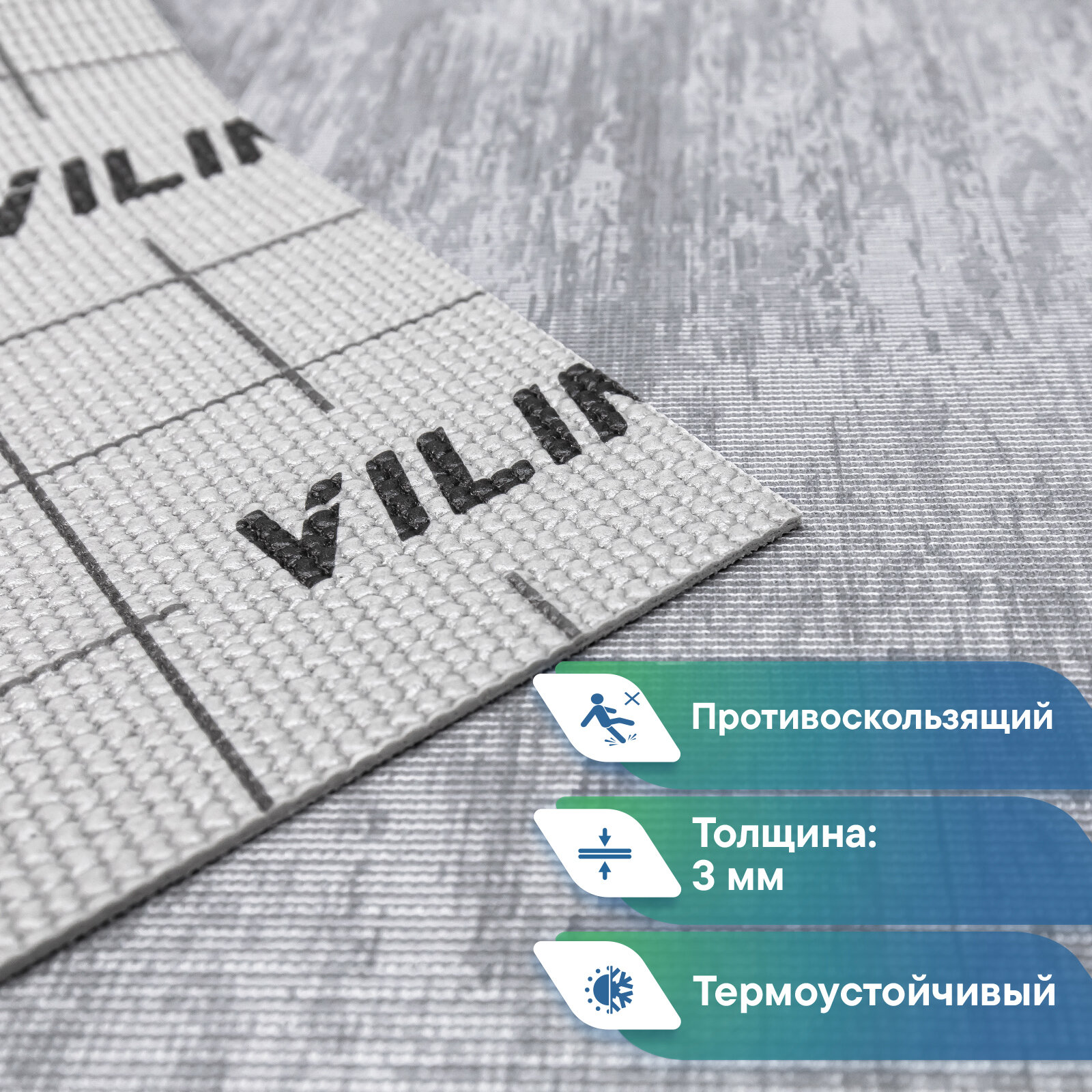 Коврик противоскользящий мягкий VILINA напольный безворсовый для ванной для туалета в комнату 65х180 см мрамор "Элемент" серый