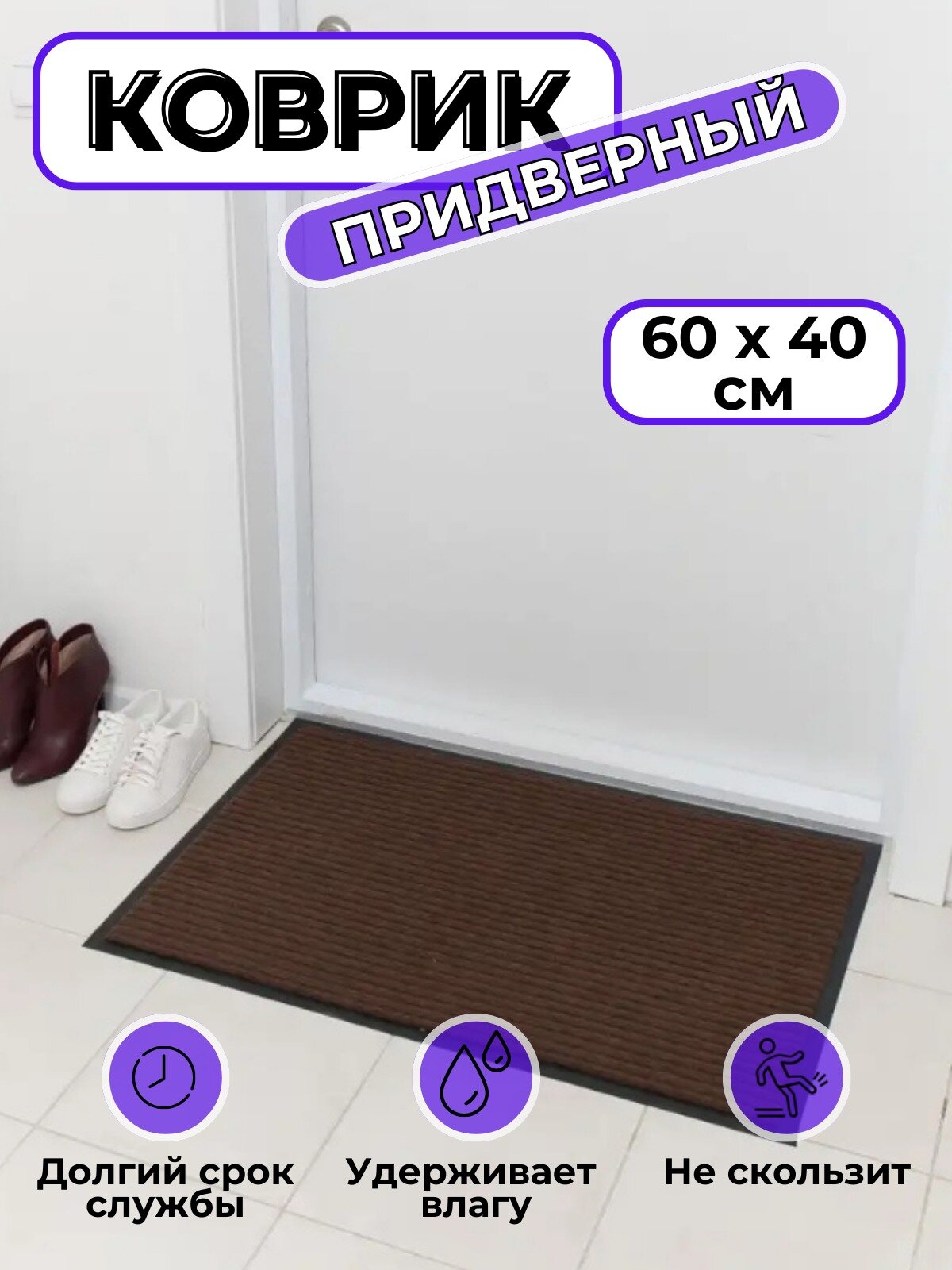 Ниже Вы можете прочитать отзывы на Коврик придверный в прихожую 40*60/коврик придверный грязезащитный/цвет коричневый, ознакомится с подробными характеристиками, посмотреть интересные обзоры и фотографии на Коврик придверный в прихожую 40*60/коврик придверный грязезащитный/цвет коричневый.