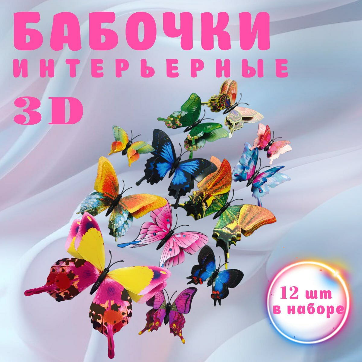 Наклейки бабочки интерьерные 3д для украшения комнат, дома и цветов цвет фуксия