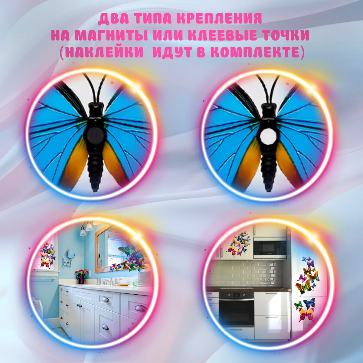 Интерьерные наклейки бабочки на стену 3д. Декор для дома. Бабочки на магнитах разноцветные 1