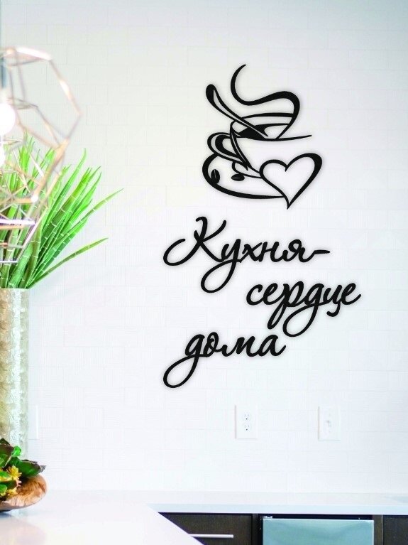 Купить Декоративная наклейка на стену "Кухня сердце дома (чашка кофе)" (вырезанная), размер листа 30*40 см, черная (1 шт)