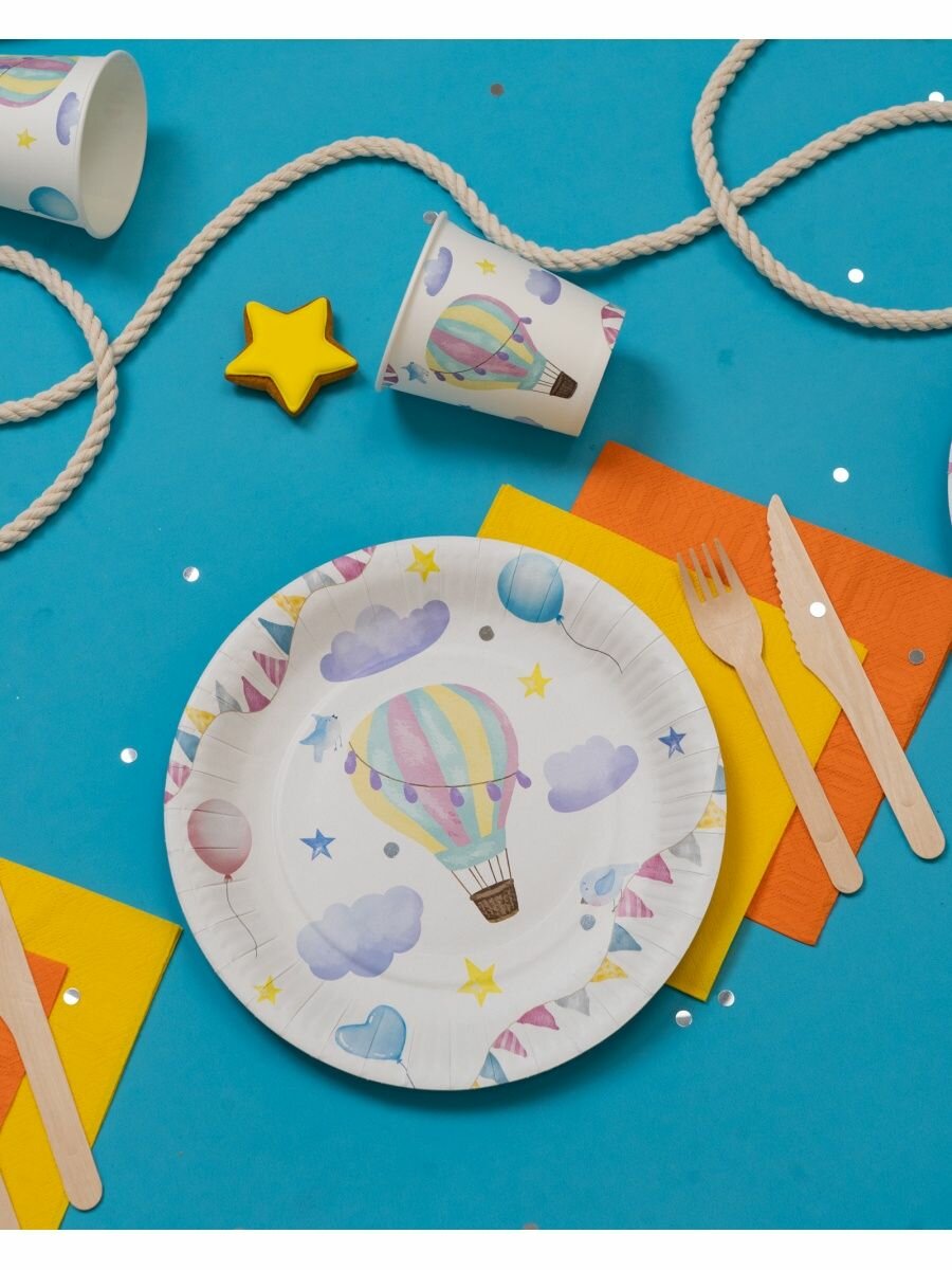 Набор одноразовой посуды для пикника и праздника на 12 персон детский, принт "Воздушный шар"