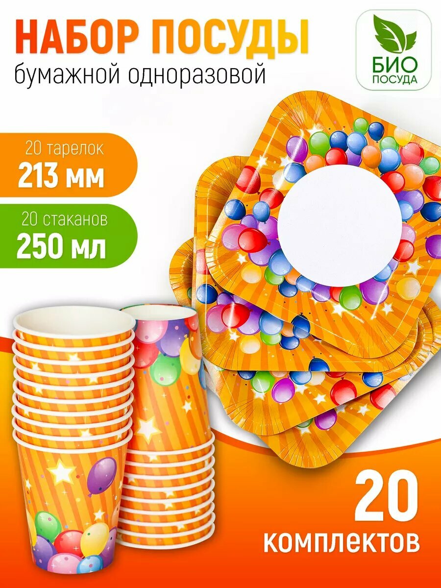 Набор посуды картонэко "Шары", бумага, 40 штук