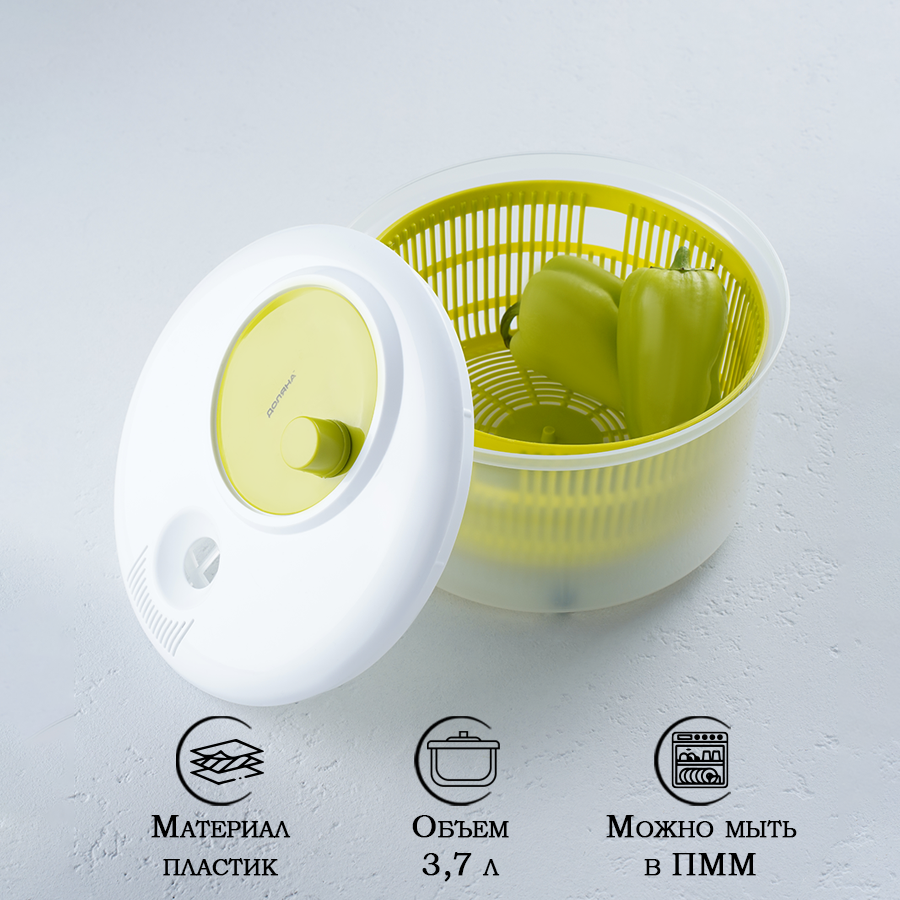 Центрифуга для сушки зелени Доляна Fresh cook, 3,7 л, пластик, цвет бело-зелёный интересное: