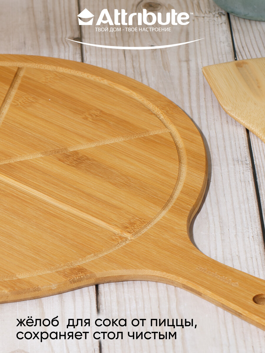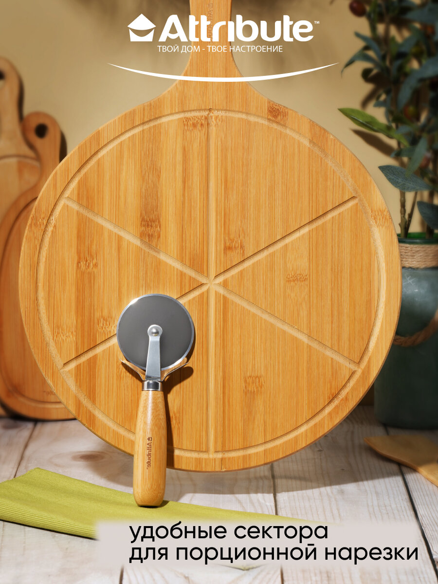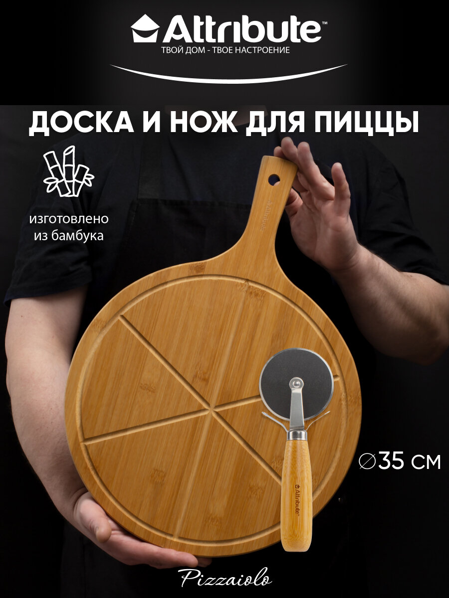 Набор для подачи пиццы: доска для пиццы 35см + нож для пиццы "PIZZAIOLO", бамбук, нержавеющая сталь