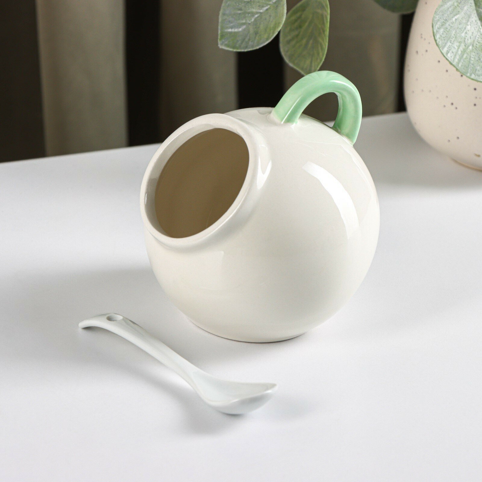 Сахарница с ложкой Доляна «Флора и Фауна», 200 мл, цвет белый