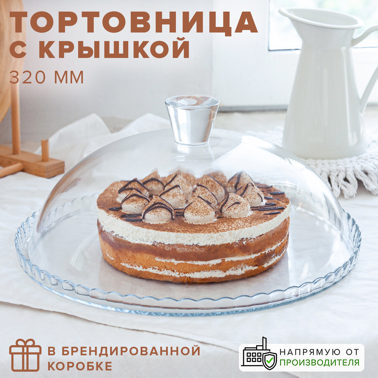 Тортовница с крышкой стеклянная 32 см, Pasabahce в брендированной упаковке интересное: