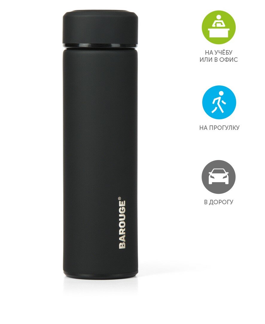 Barouge Термобутылка черная из нержавеющей стали Travel, 450 мл BT-002/50 BT-002 450 мл/черный/бутыл .