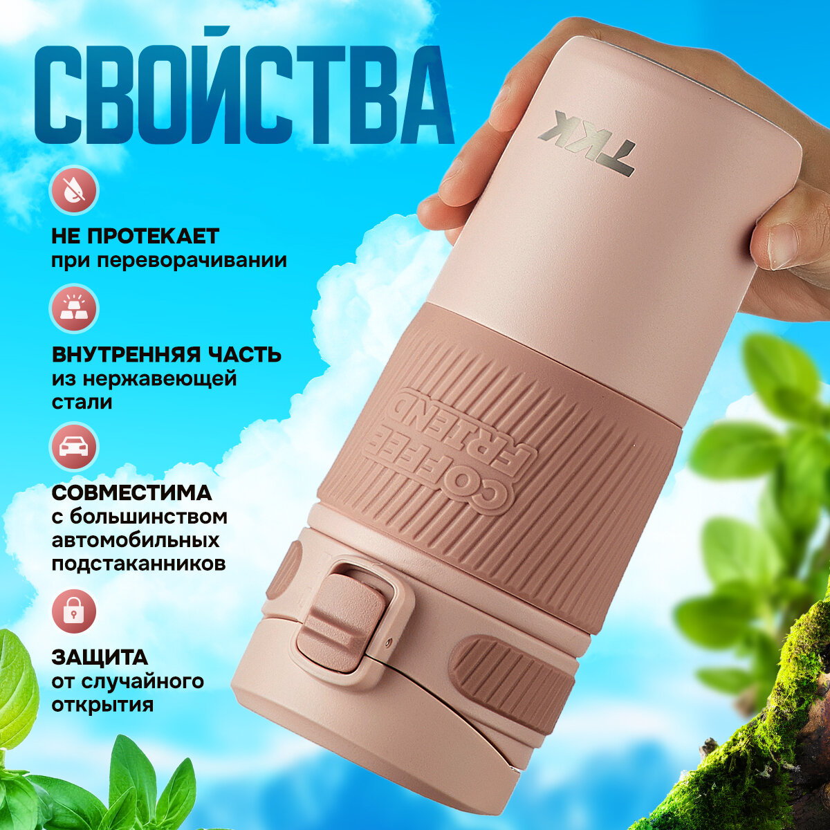 СохранитьТермокружка автомобильная туристическая для чая и кофе термос TKK Premium из нержавеющей стали, 450 мл, розовый интересное:
