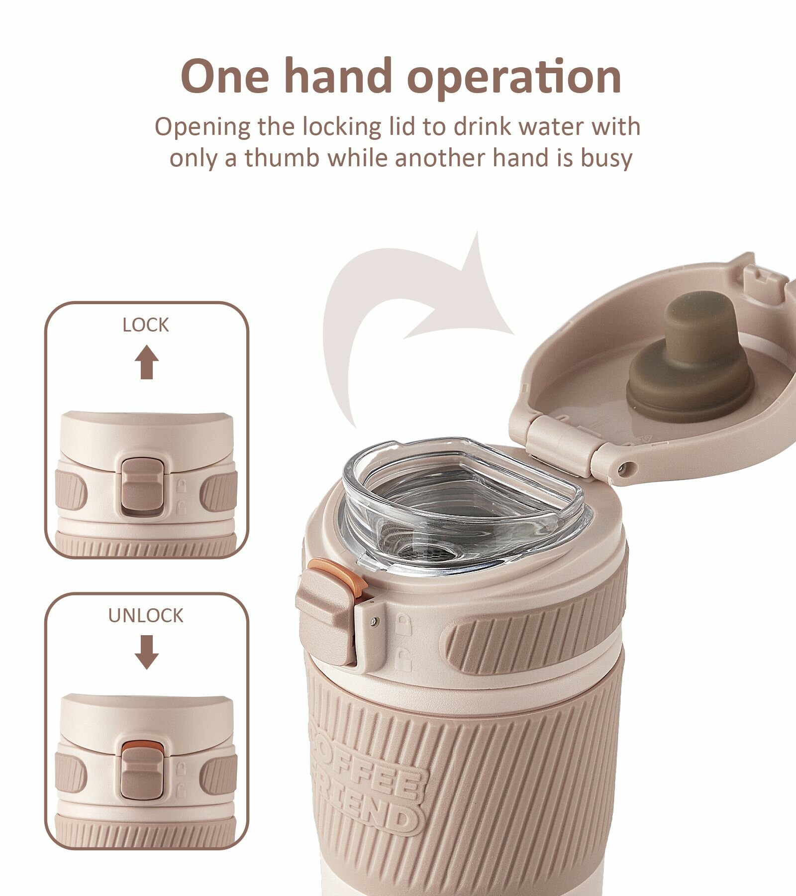 Термокружка автомобильная термостакан туристический для чая и кофе термос TKK Premium из нержавеющей стали, 450 мл, кремовый
