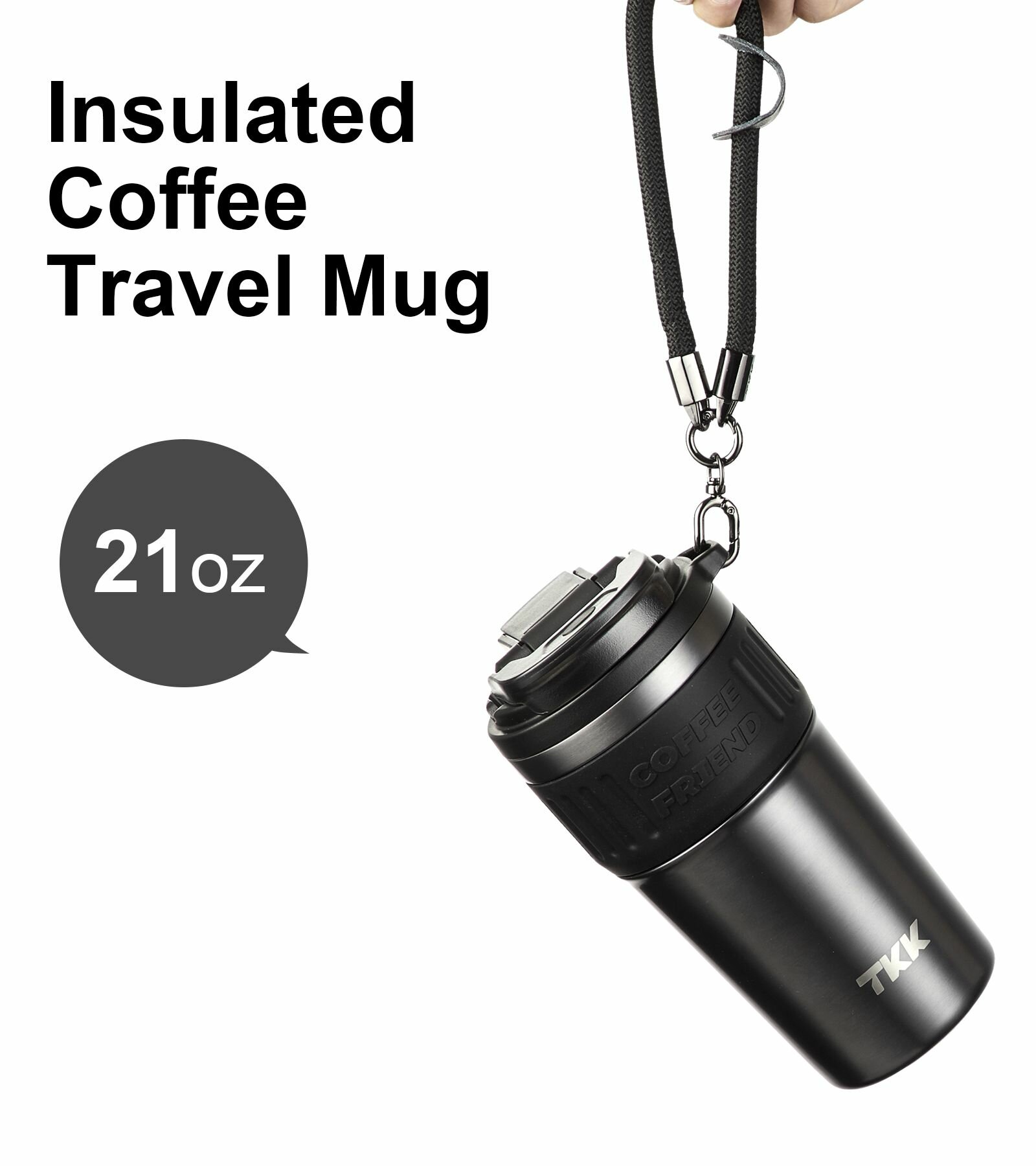Термокружка автомобильная термостакан туристический для чая и кофе термос TKK Premium из нержавеющей стали, 630 мл, чёрный