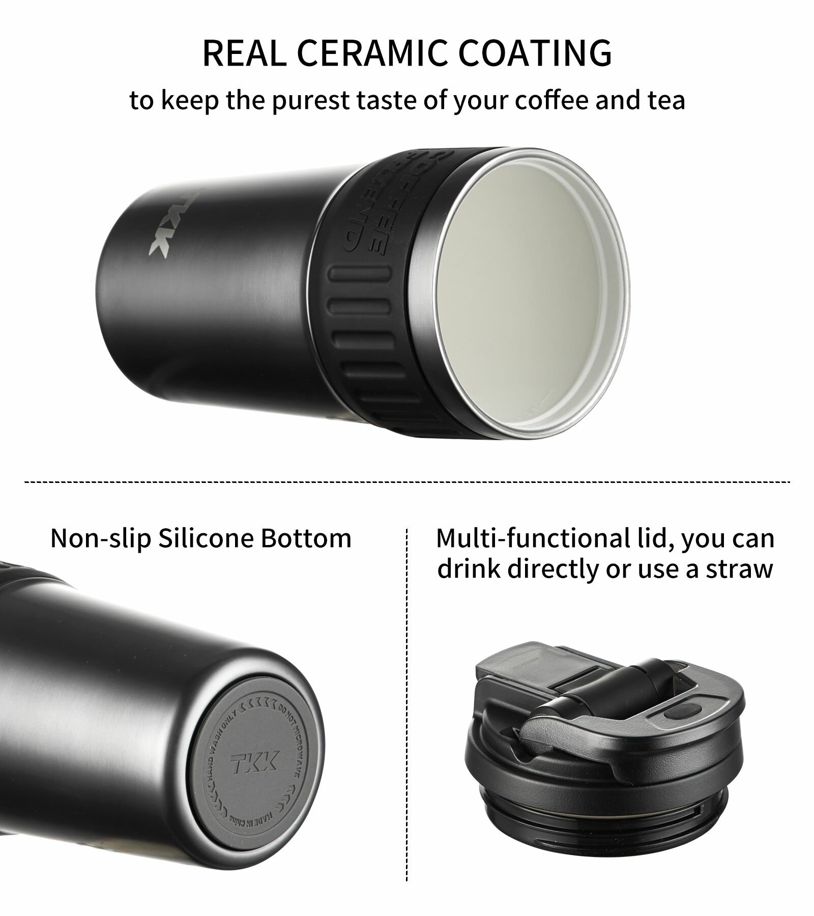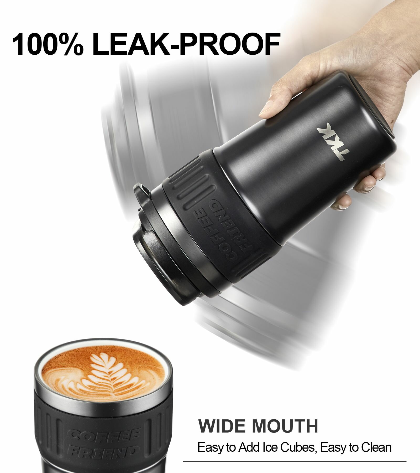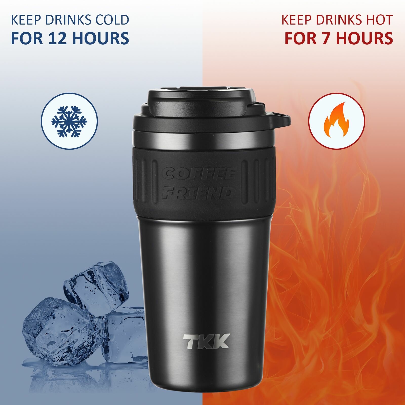 Термокружка для чая и кофе TKK Premium из нержавеющей стали, 500 мл, чёрный