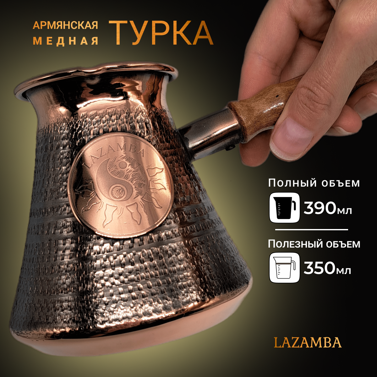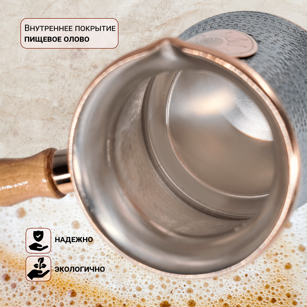 Купить Турка для кофе 0,39 л, джезва медная 390 мл., подарок