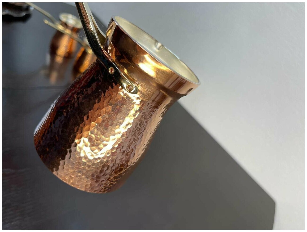 Турка медная кованая, джезва медная ручной работы, лужение серебро, чеканка, 225мл