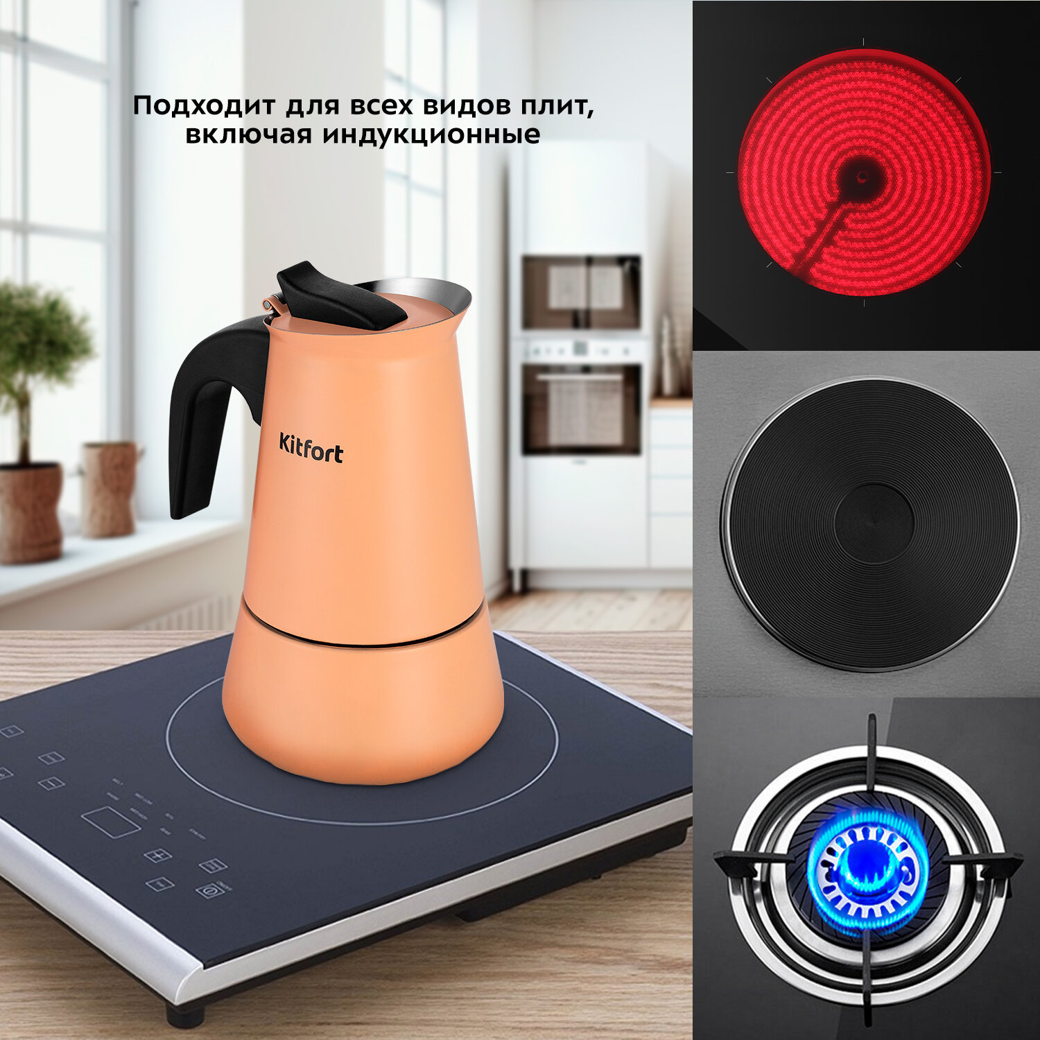 Кофеварка гейзерная Kitfort КТ-7148-2 персиковый интересное: