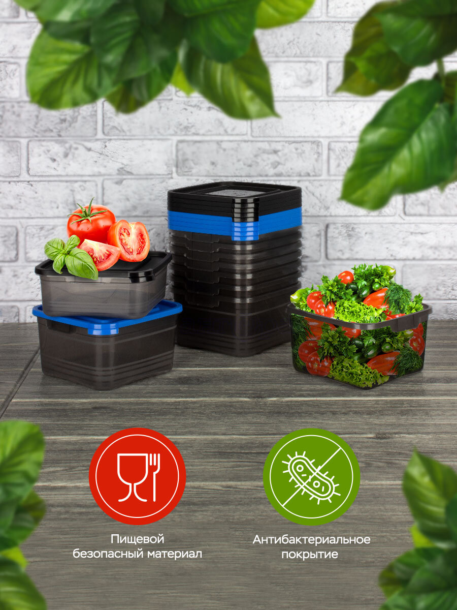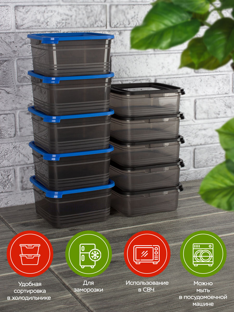 Контейнер для еды и хранения продуктов 10 шт Ангора, набор контейнеров 0,7 + 1л, синий + черный интересное: