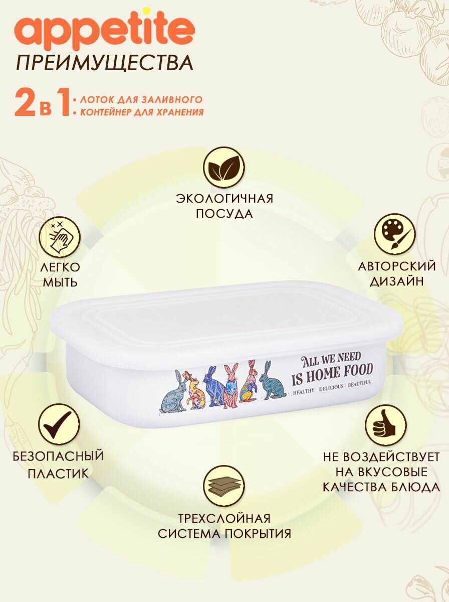 appetite appetite Лоток эмал Зайцы 1,5л прям пласт/кр TM 2508/4 Зайцы интересное: