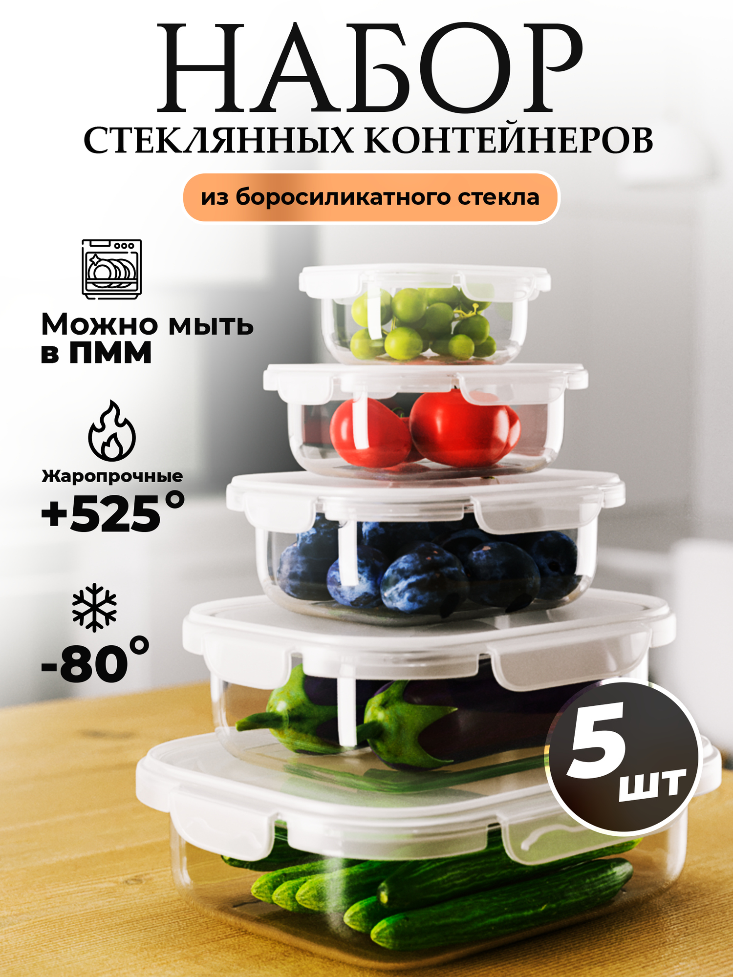 Набор стеклянных контейнеров для хранения продуктов 5 штук интересное: