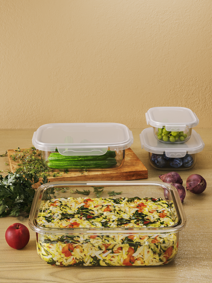 | Комплектация | Набор стеклянных контейнеров с герметичными крышками |