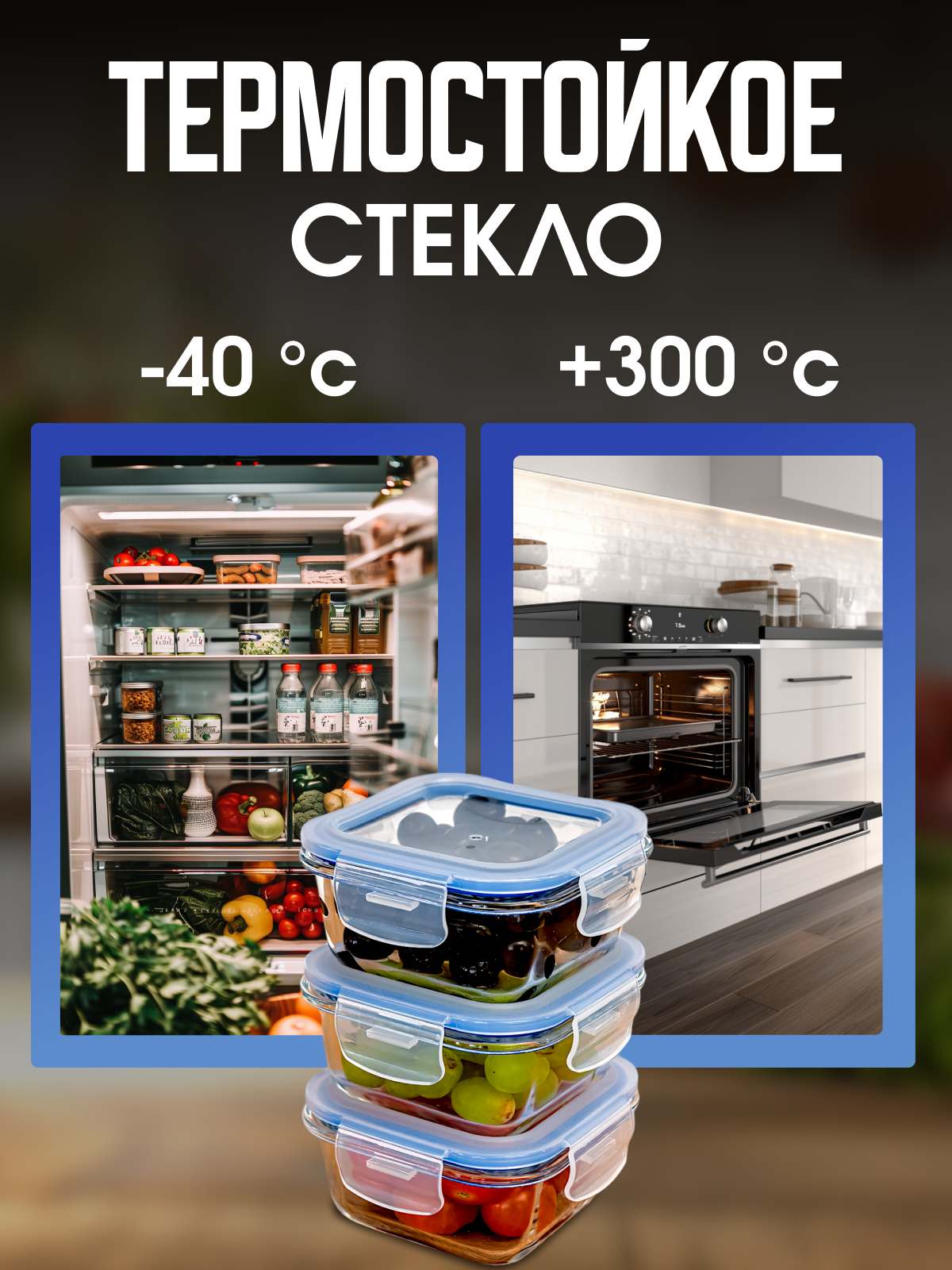 Набор герметичных стеклянных контейнеров объемом 300мл (набор из 3-х штук) интересное: