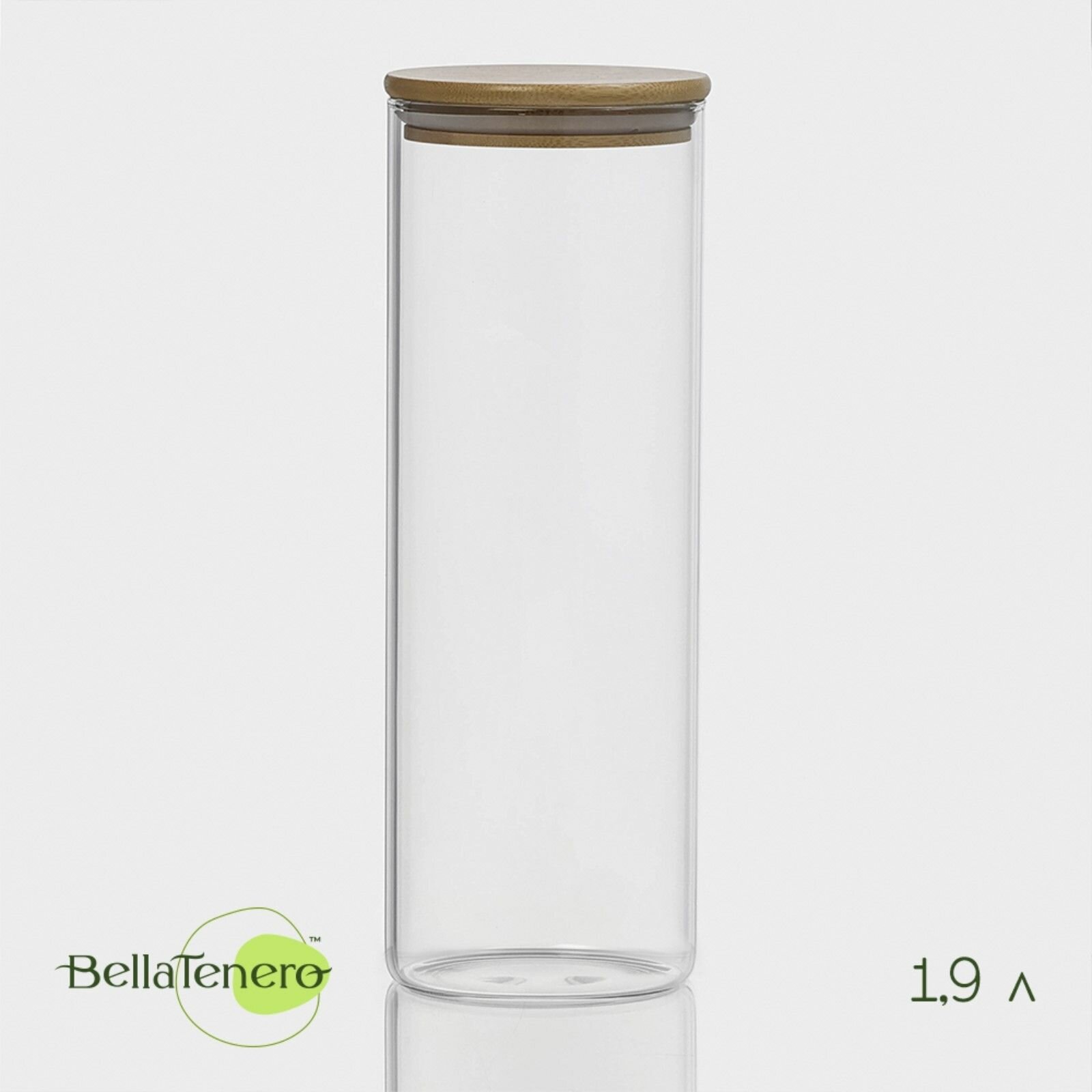 Банка для сыпучих продуктов BellaTenero «Эко», 2 л, 12×20 см, с бамбуковой крышкой, стекло, прозрачная