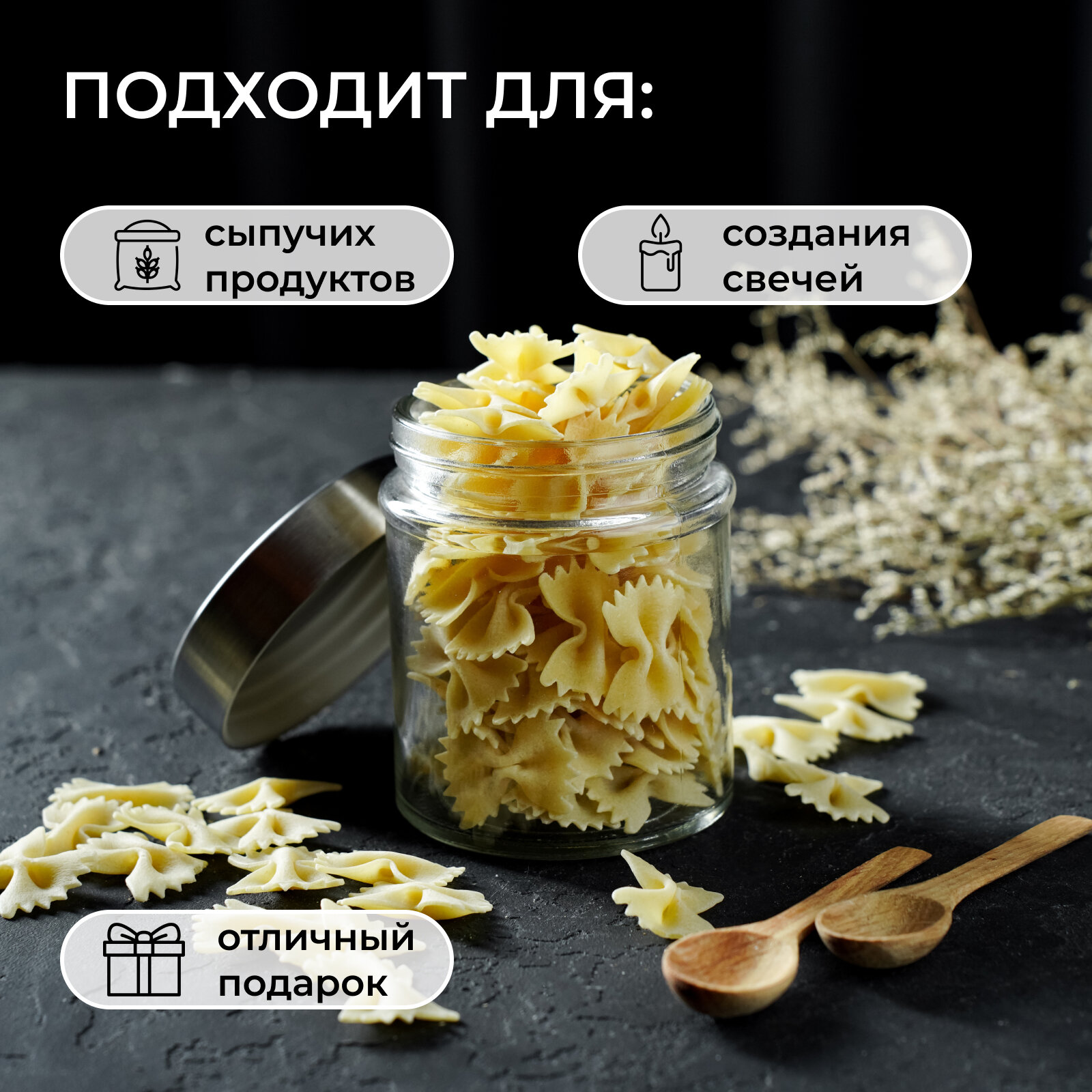 Банка стеклянная для сыпучих продуктов с металлической крышкой Доляна «Премиум», 350 мл, 10×8 см (арт. 114072)