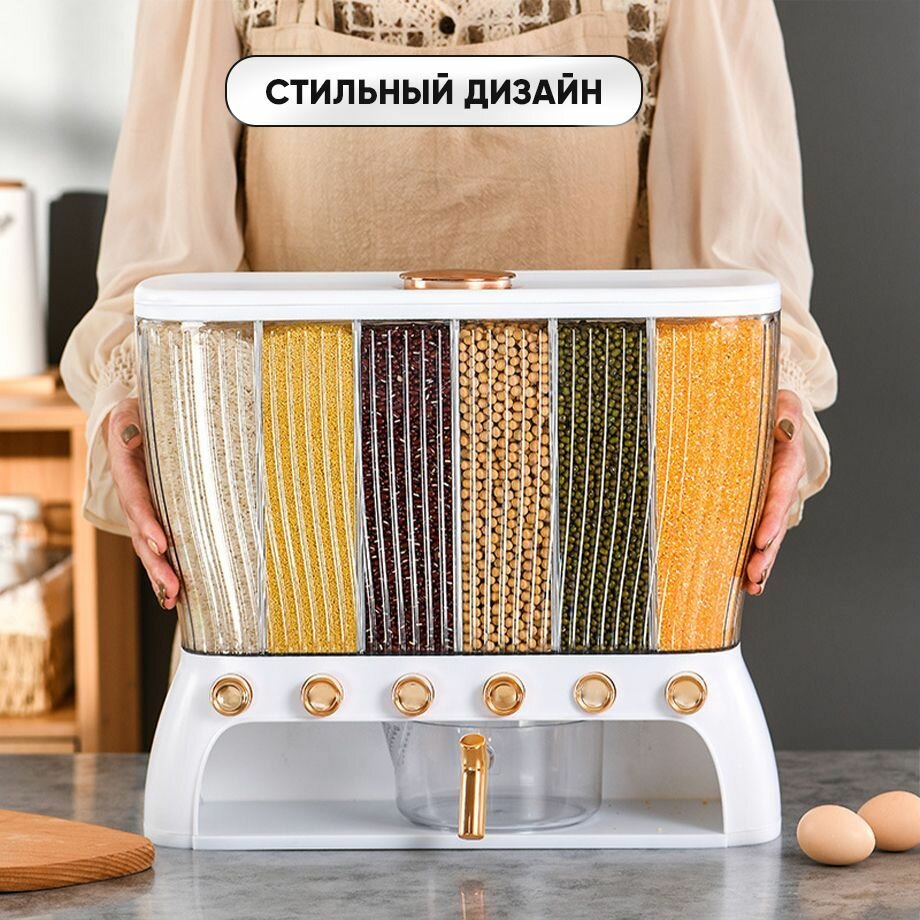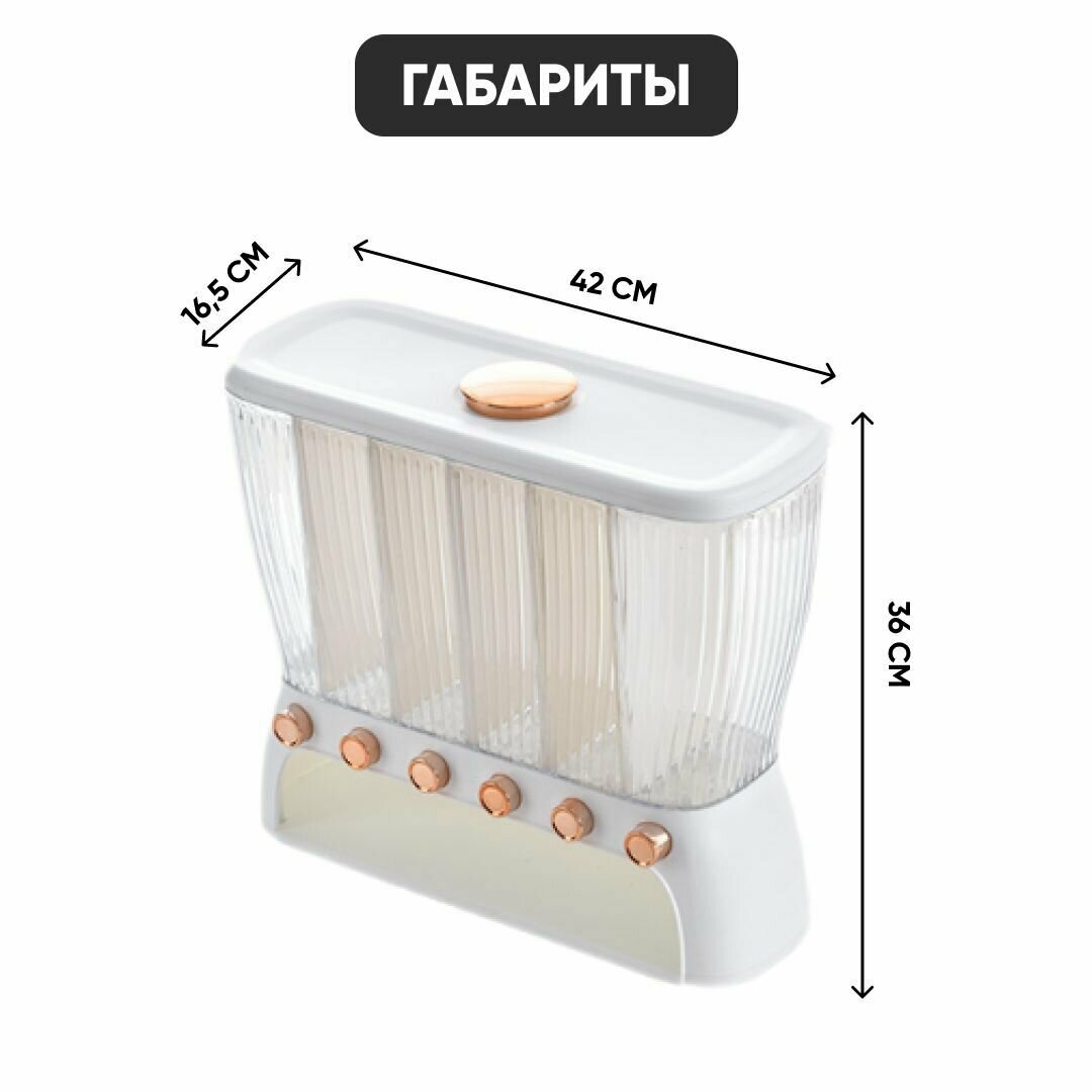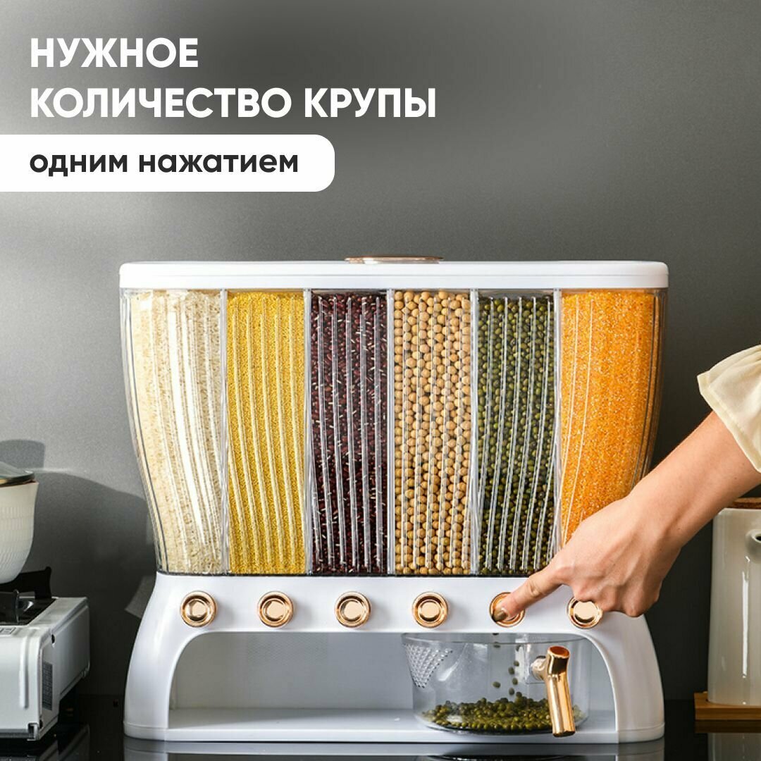 Диспенсер кухонный для круп и сыпучих продуктов Oqqi, с дозатором, 6 секций, 12 литров интересное:
