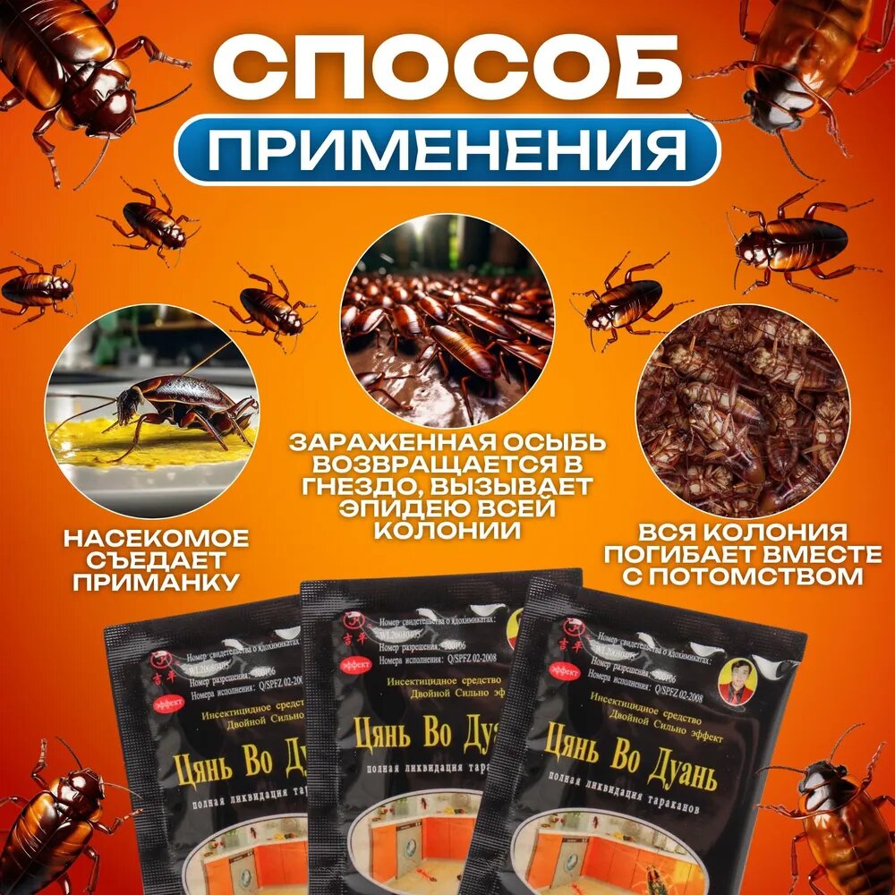 Порошок от тараканов, клопов, муравьев Цянь Во Дуань 30 г, черный 2 шт