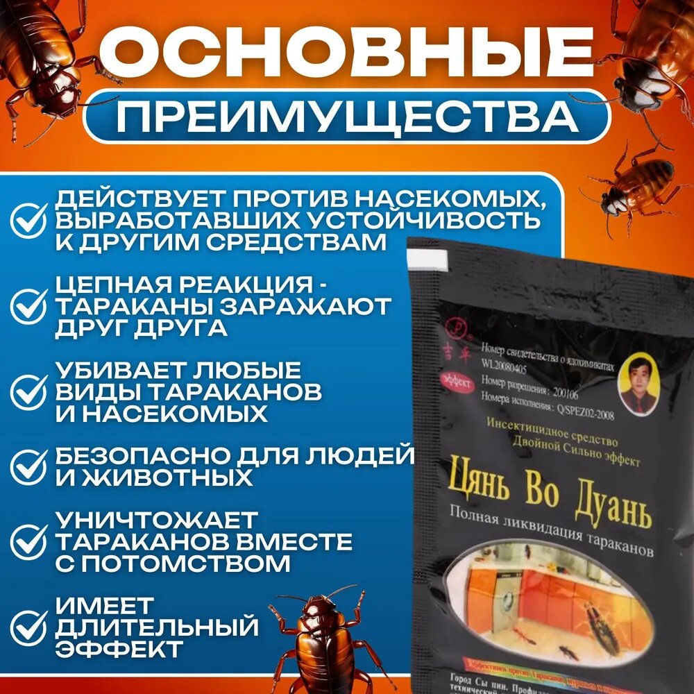| Подробная комплектация | Цянь во Дуань средство от тараканов, муравьёв и клопов, 15 гр - 1 упаковка |