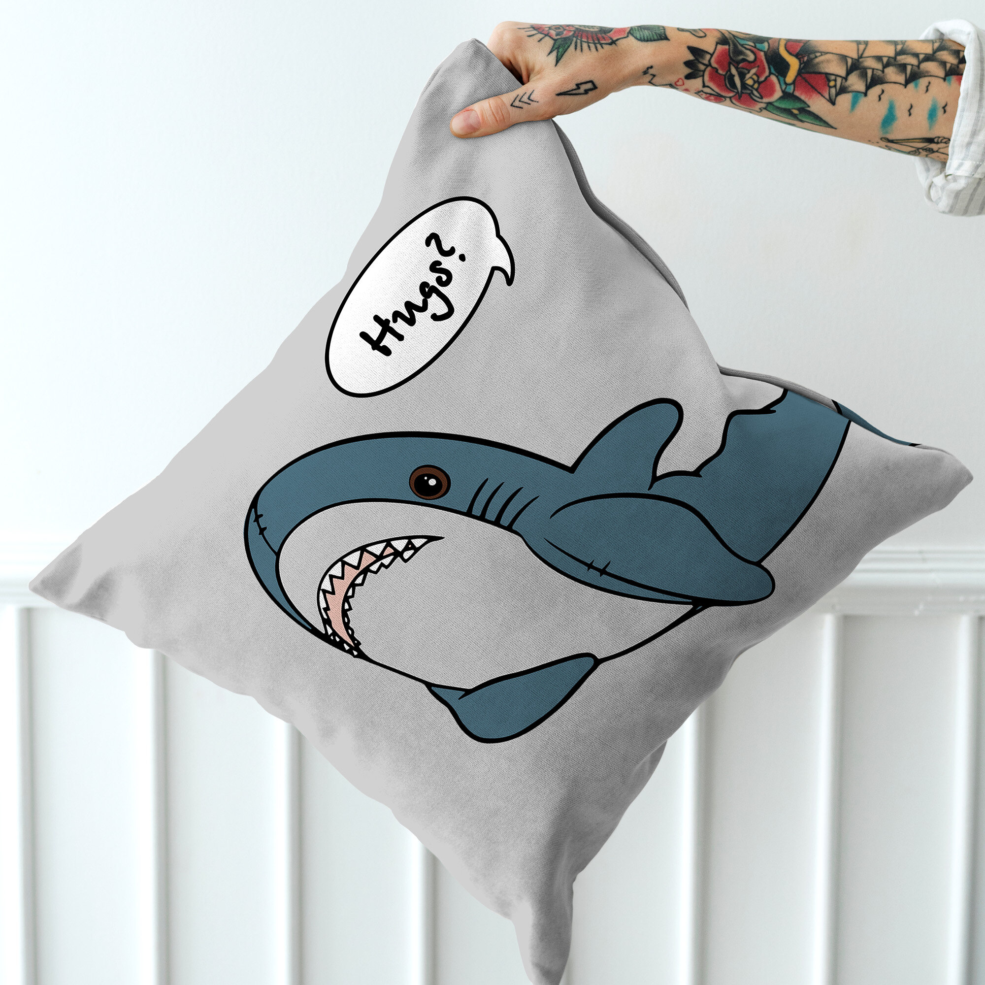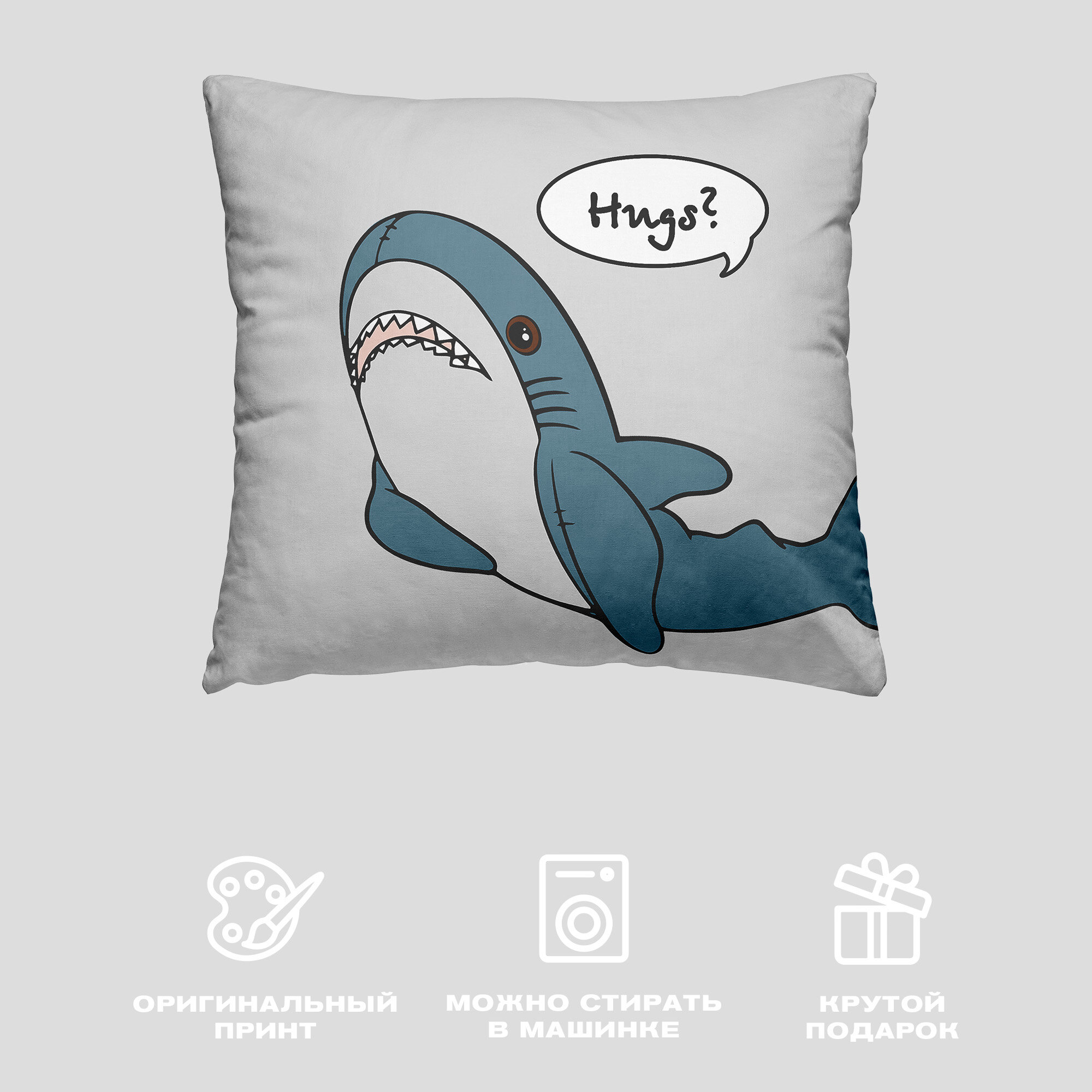 Купить Подушка 40х40 декоративная габардин / для дома / наволочки декор / в гостинную / гипоаллергенная / мягкая "Crazy Getup" рис 16694-1 Plush shark