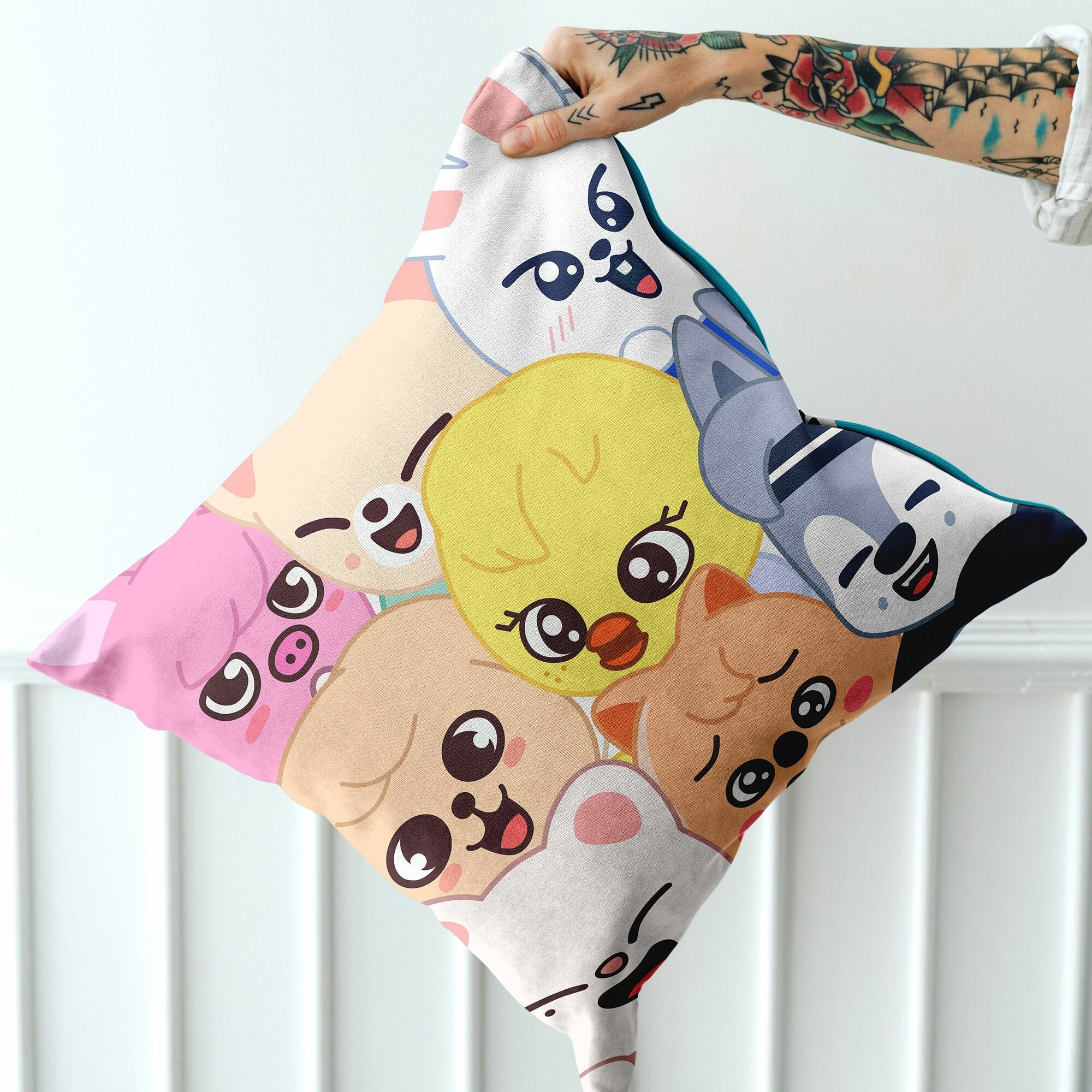 Подушка 40х40 декоративная габардин / для дома / наволочки декор / в гостинную / гипоаллергенная / мягкая "Crazy Getup" рис 16692-1 Cuties