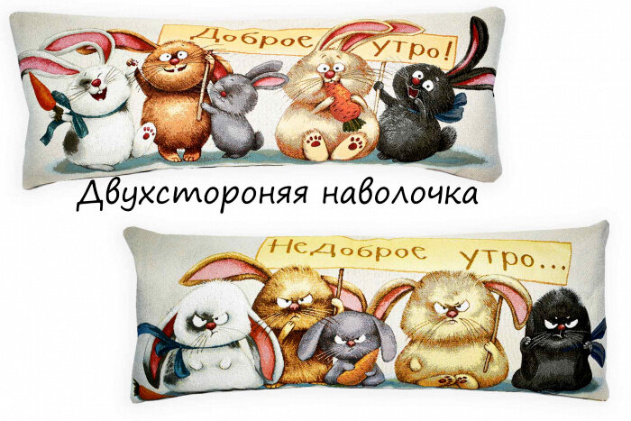 Подушка Декоративная Гобеленовая двусторонняя 32х85 "Доброе-недоброе утро кролики" интересное: