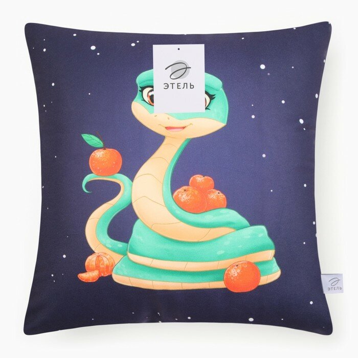 Новый год. Символ года. Змея. Подушка Этель "Змея с мандаринами" 40х40 см, 100% п/э, велюр