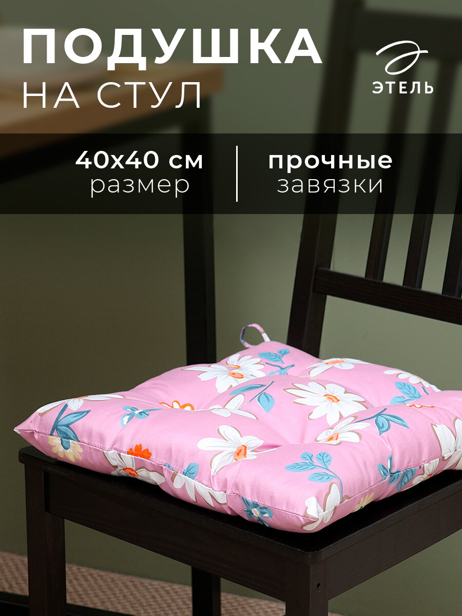 Купить Сидушка на стул Этель "Цветы" цв.сиреневый, 40х40 см, 100% п/э