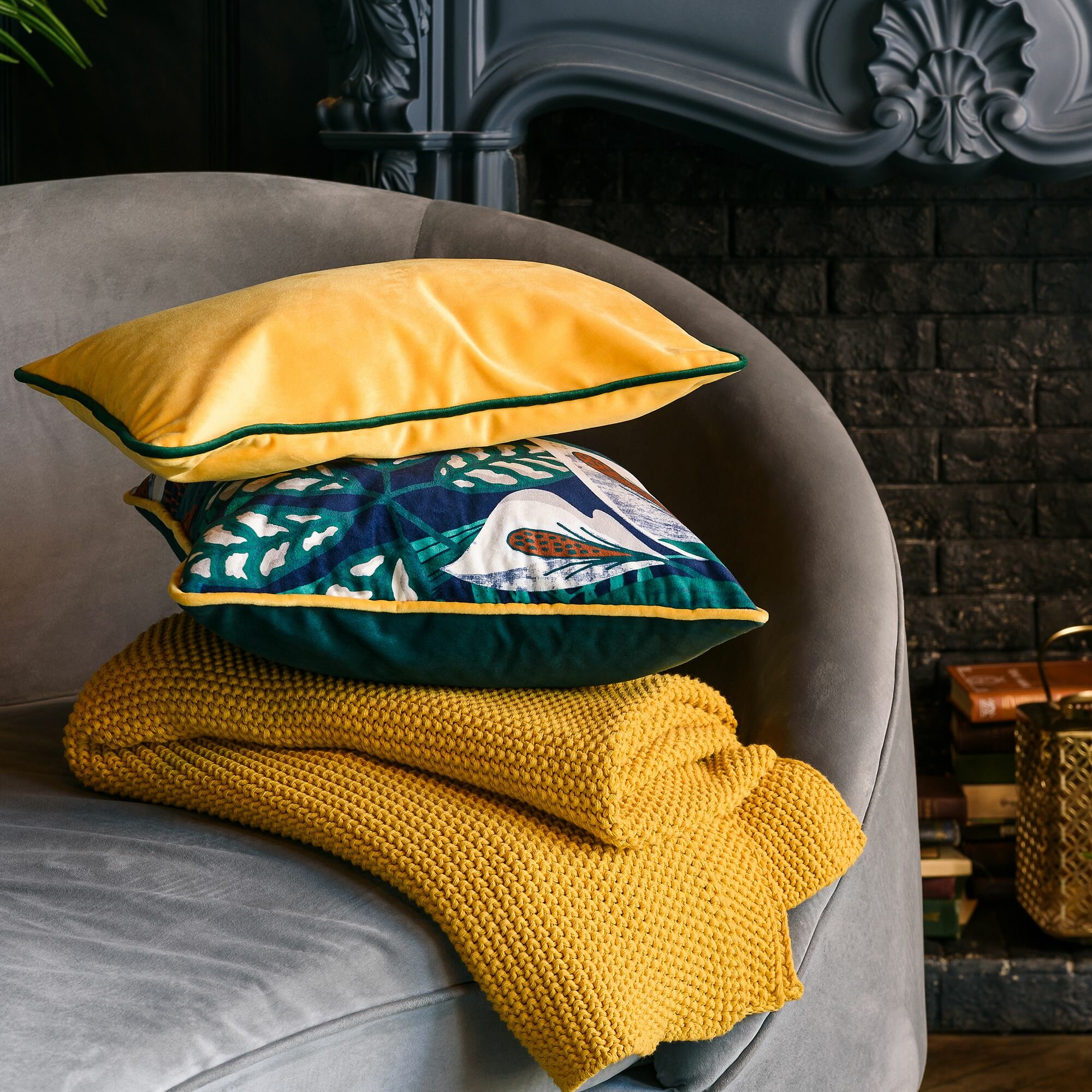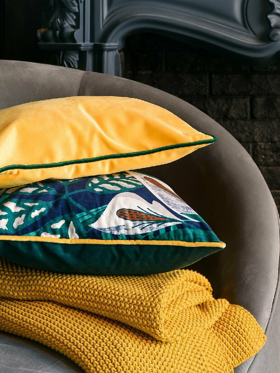 СохранитьПодушка декоративная со съемным чехлом на скрытой молнии желтая для интерьера 45х20 см, Moroshka Shangri La интересное: