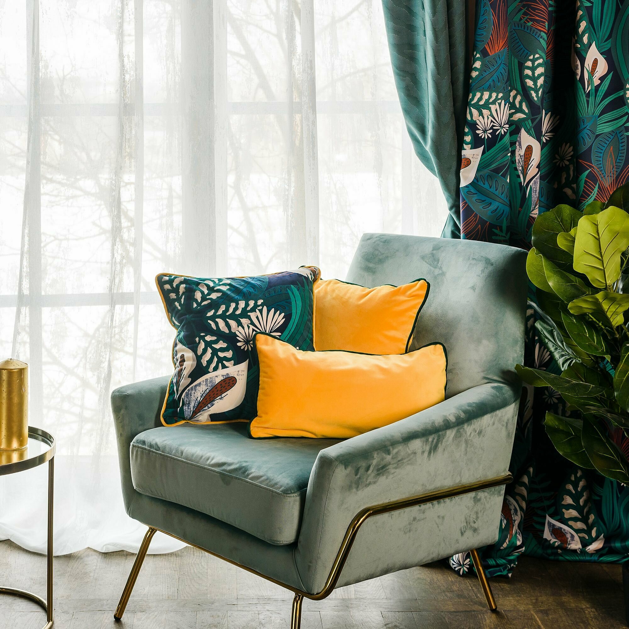 Подушка декоративная со съемным чехлом на скрытой молнии зеленая для интерьера 45х20 см, Moroshka Shangri La